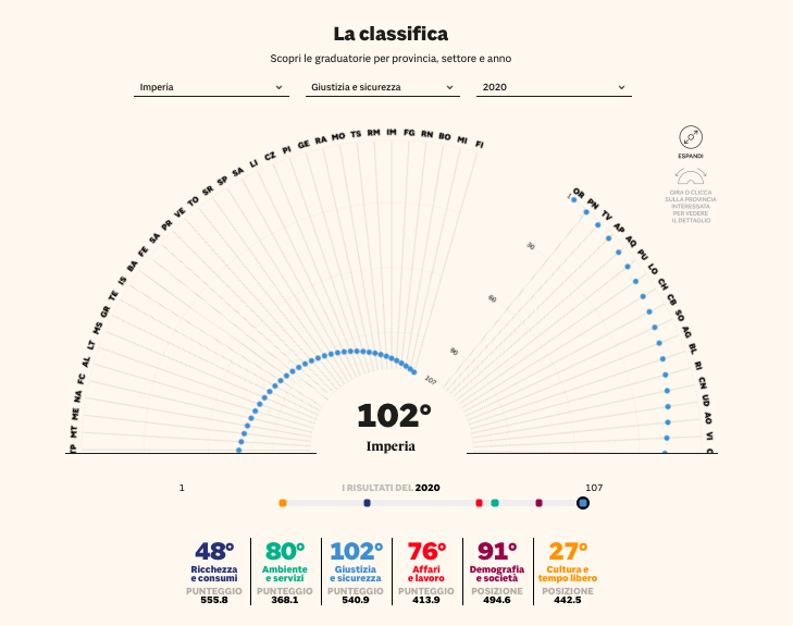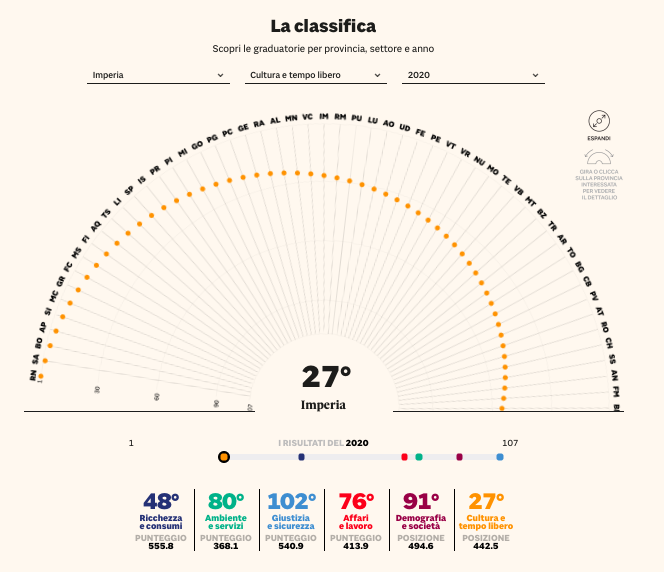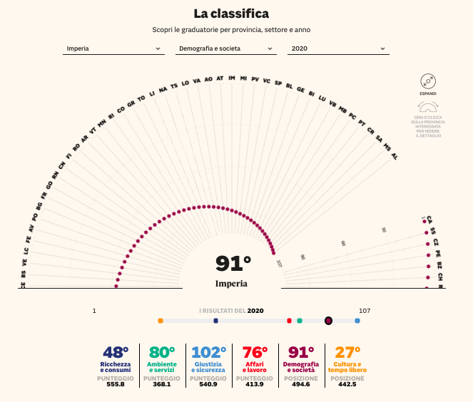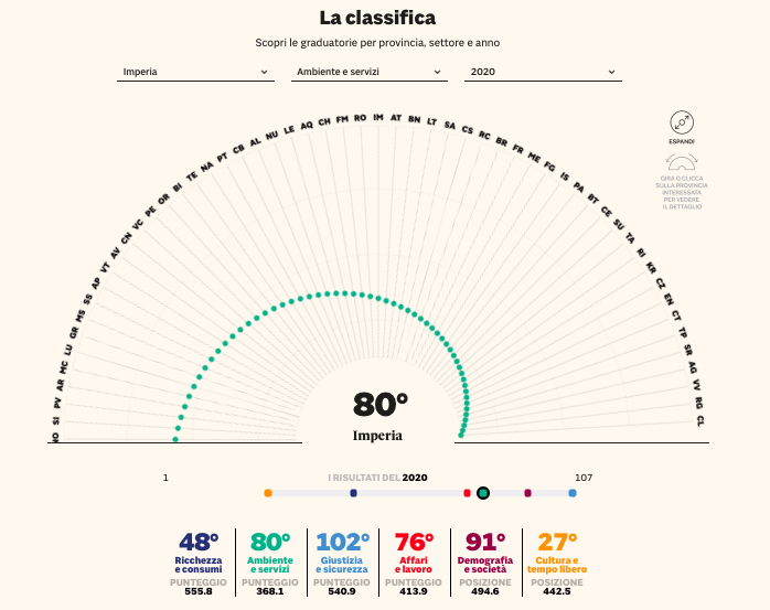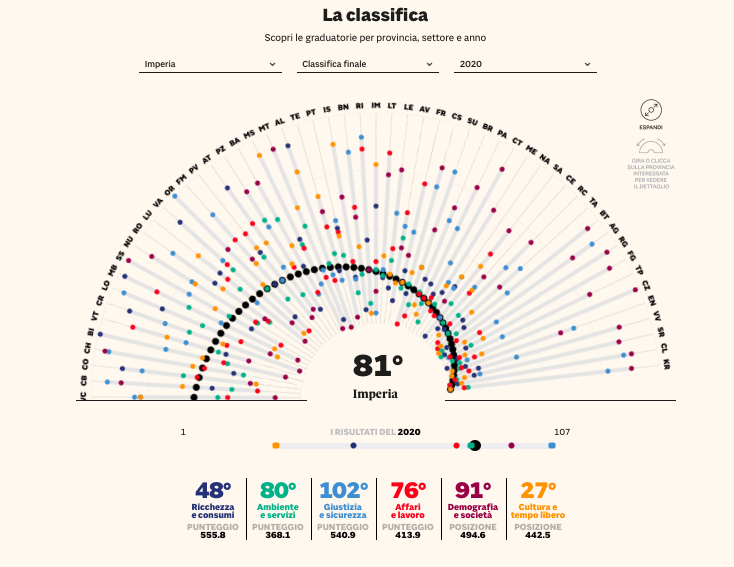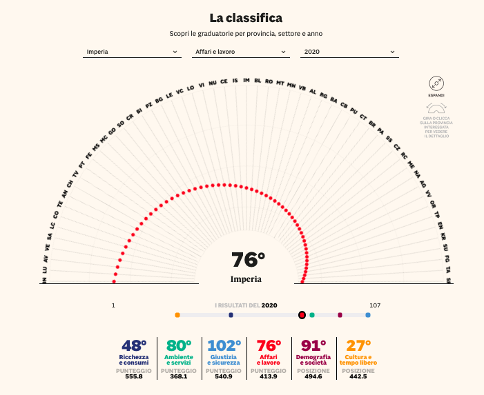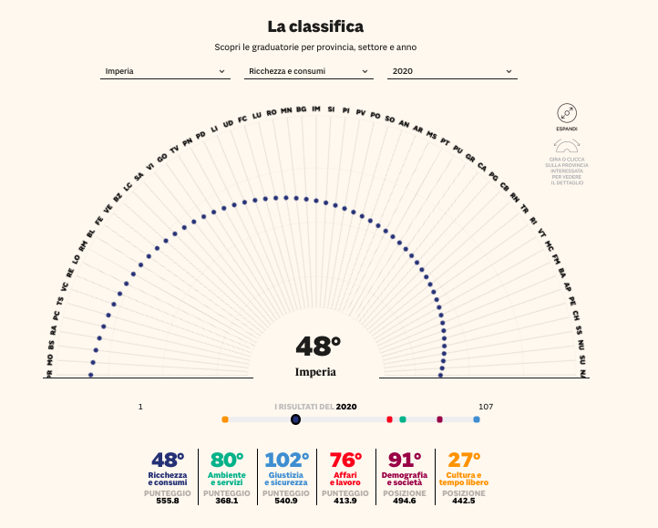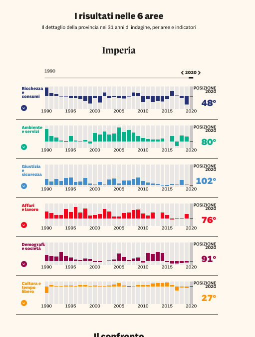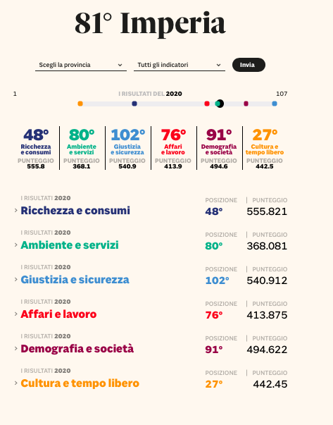 Ecco le posizioni della provincia di Imperia suddivise tra i 6 macro indicatori: