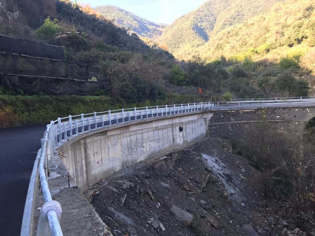L’Amministrazione provinciale ha così completato un intervento tecnicamente complicato (l’interruzione era avvenuta in un tratto in curva, e quindi per il ripristino è stato necessario allestire palificazioni e tiranti nella roccia). Un intervento che era iniziato nei primi giorni dell’anno con il posizionamento di un ponte bailey sostitutivo (smantellato in queste ultime ore), per evitare l’isolamento dell’abitato di Rocchetta Nervina.