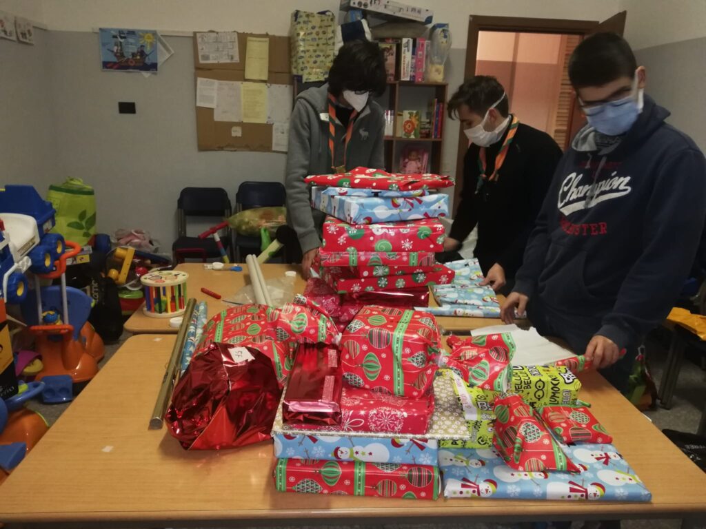 Pupazzi, libretti, bambole, giochi in scatola, macchinine, puzzle. E poi fiocchi, carta regalo, nastri e bigliettini. Sembra di entrare nella casa di Babbo Natale, con i fedeli aiutanti impegnati per preparare tutto il necessario. Invece siamo a Cristo Re, e all’opera sono i giovanissimi Scout, dei gruppi Imperia 1 e Imperia 2, ideatori di un’iniziativa per donare un sorriso ai bambini meno fortunati.