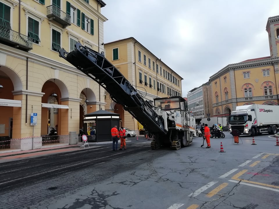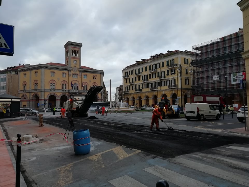 Sono iniziati questa mattina i lavori di asfaltatura di Piazza Dante, nell’ambito della più ampia riqualificazione del centro di Oneglia. Le operazioni termineranno nella giornata di venerdì 18 dicembre.