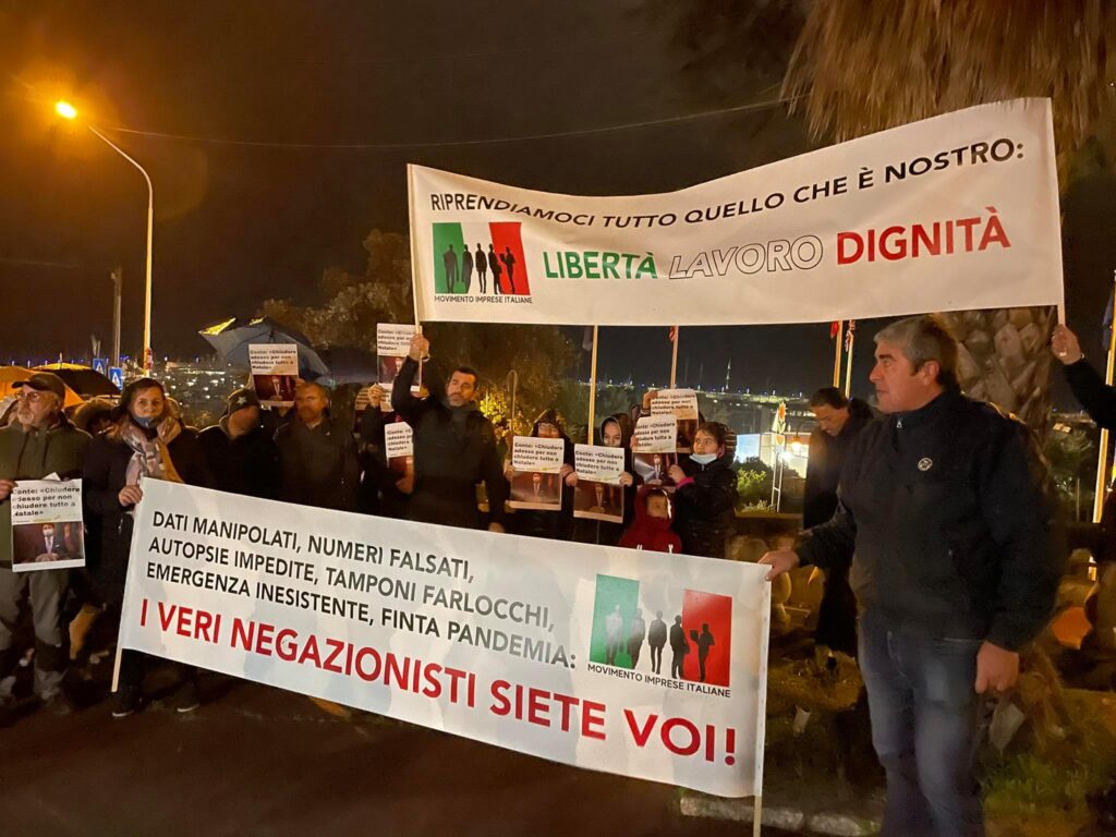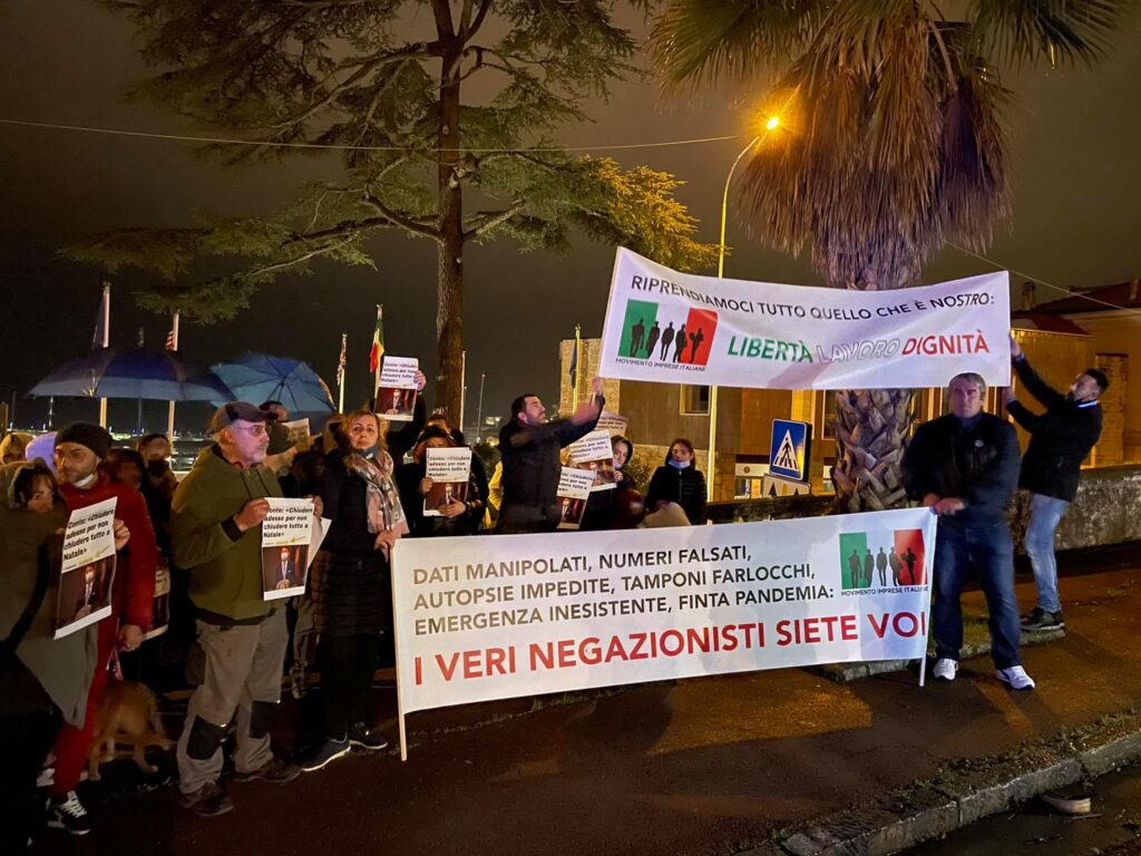 “Non c’è nessuna emergenza sanitaria. Il Covid è una sindrome influenzale curabile, con una mortalità bassissima. Noi non siamo negazionisti, noi rivendichiamo il diritto alla libertà e il diritto al lavoro”.
