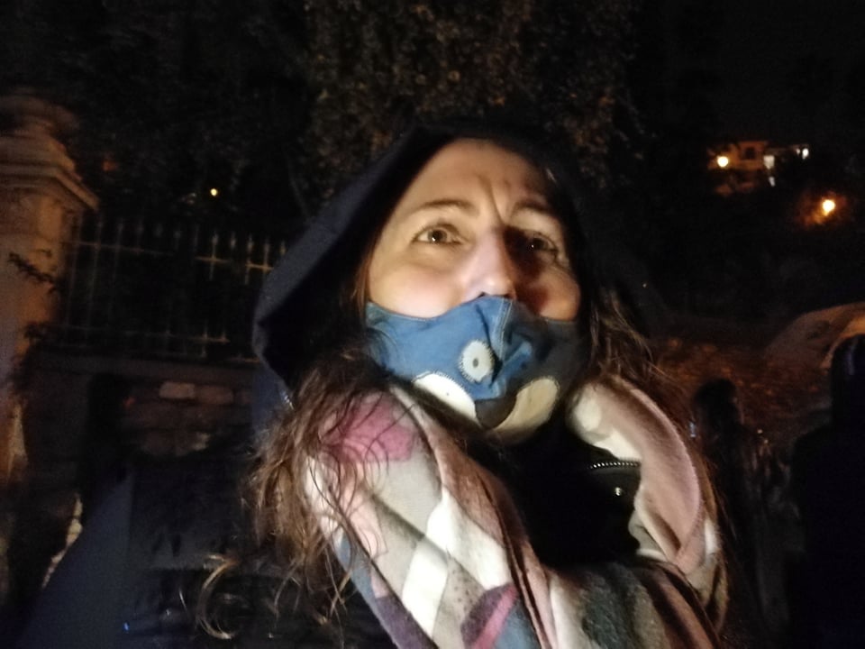 Noi non abbiamo la mascherina perché riteniamo che non esista un’evidenza scientifica che la mascherina protegge dal virus. Noi siamo per la libertà delle persone, non violiamo nessuna legge. Esiste invece una legge che vieta di presentarsi a volto coperto in un luogo pubblico”.