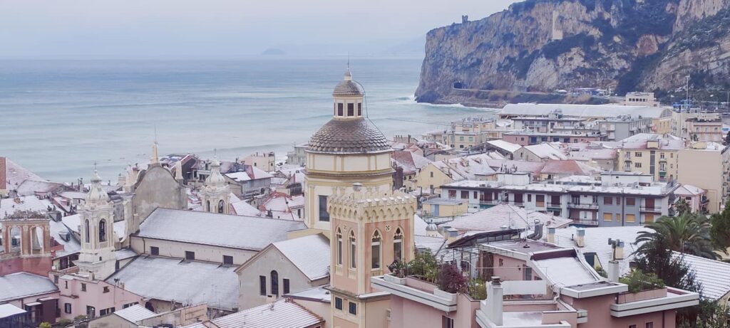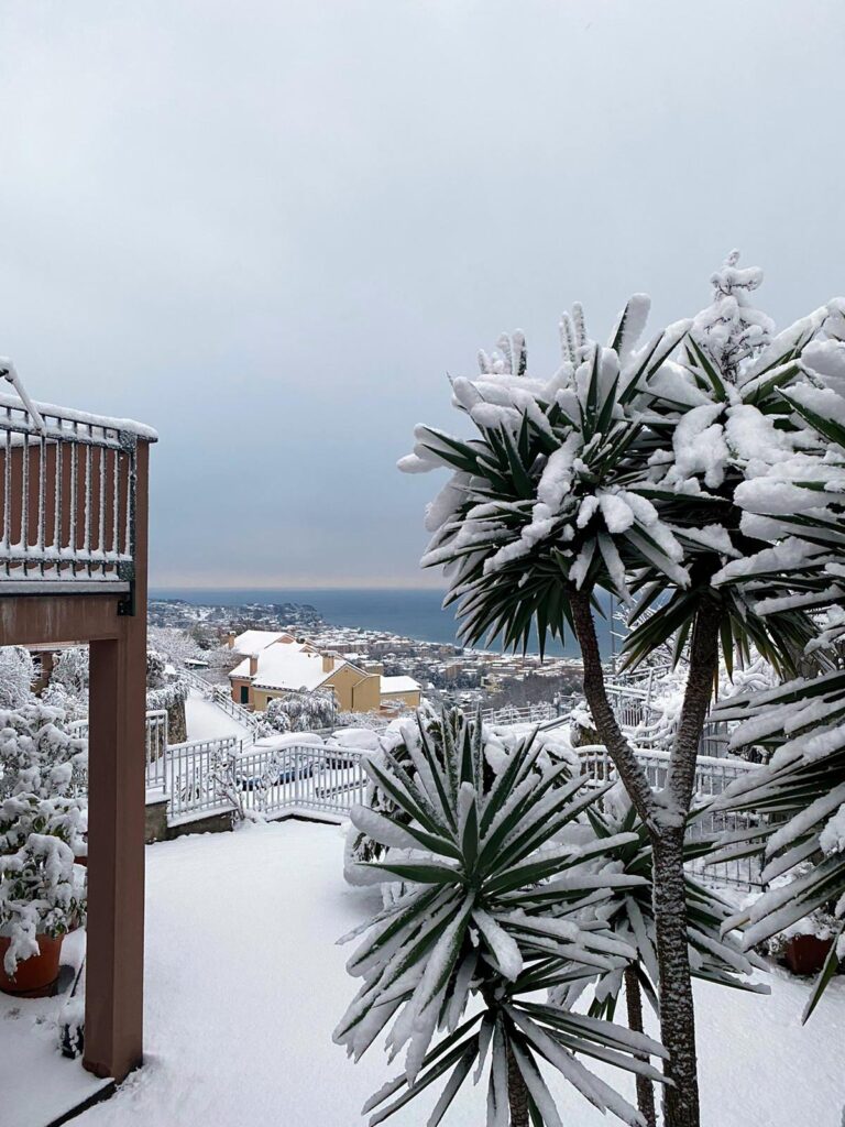 Liguria: Imperia, neve nell’entroterra. Costa imbiancata a levante