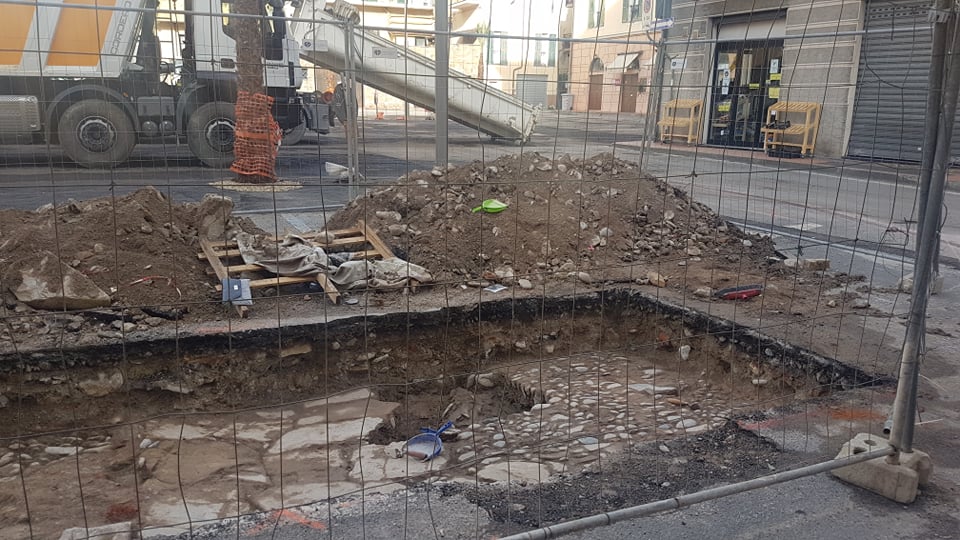 Questa mattina il Sindaco Claudio Scajola ha effettuato un sopralluogo. “E’ stata ritrovata una prima porzione di pavimentazione, a circa 60 cm di profondità, ed è stato deciso di allargare lo scavo per ulteriori approfondimenti. Nel caso in cui, come sembra, non si tratti di un ritrovamento di particolare pregio, verrà catalogato e coperto con un telo, per preservarlo. A quel punto lo scavo verrà chiuso. E’ stato l’unico punto in cui è stato fatto un ritrovamento simile su tutta la piazza”.