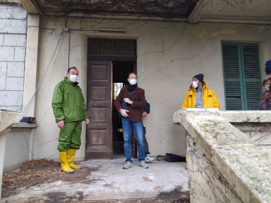 Sopralluogo del sindaco di Andora, Mauro Demichelis, dell’assessore alla cultura Maria Teresa Nasi, accompagnati da funzionari, tecnici ed operai comunali, che hanno dato via allo sgombero per agevolare i rilievi utili alla progettazione definitiva del recupero di Villa Laura.
