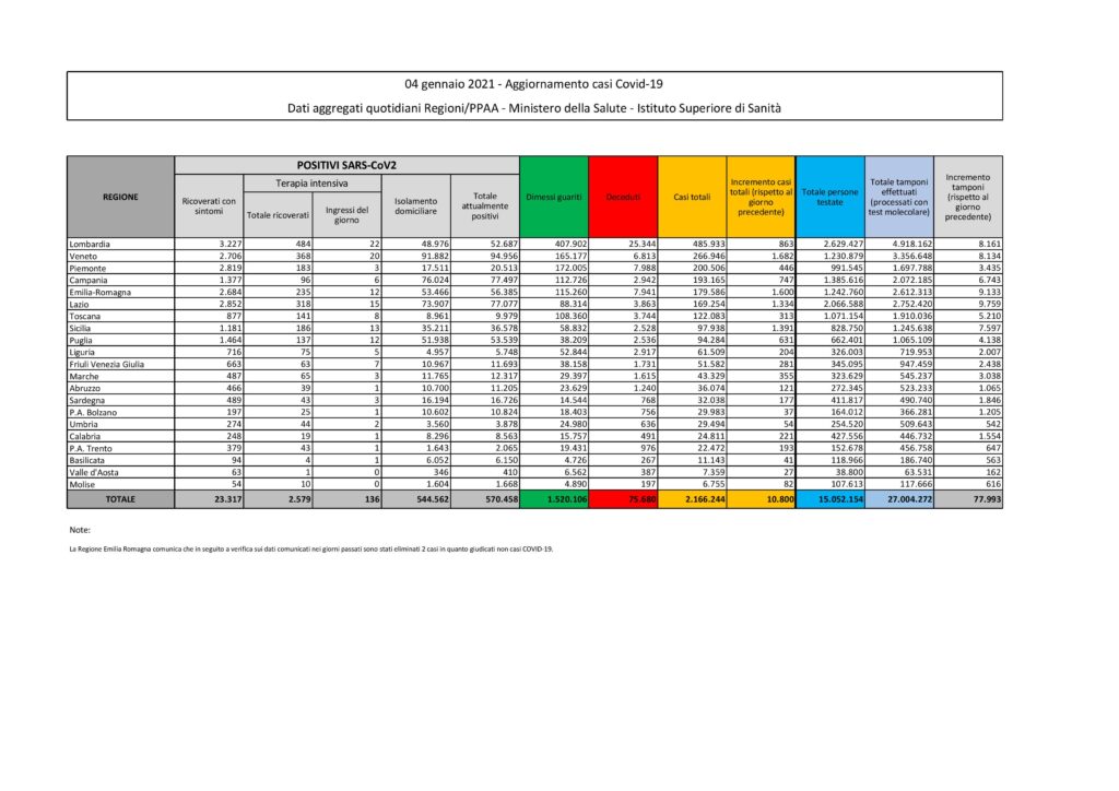 - Totale attualmente positivi: 570.458 (-5.756)