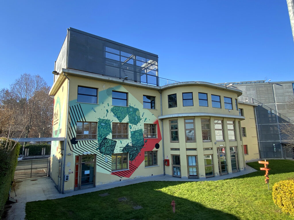 Le astrazioni geometriche e le cromie sviluppate da Corn79 dialogano con le architetture e l’ambiente circostante alle due strutture, muovendosi verso un’estetica armonica, proprio a rappresentare la prospettiva di un possibile futuro differente, rivolto a migliorare il nostro rapporto simbiotico con l’ambiente.
