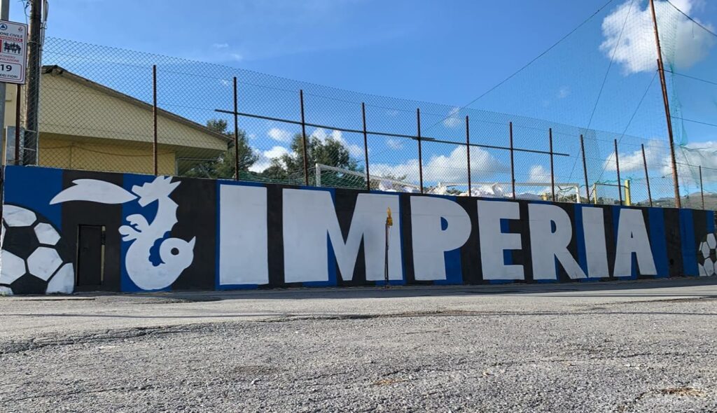 Abbiamo deciso di riprodurre lo stemma dell’Imperia – continua l’artista – in modo tale da renderlo ben visibile dalla tribuna principale e dalle telecamere che trasmettono le direttedellepartite. Il disegno è stato realizzato con pitturadata a rullo, pennelli e bombolette spray.