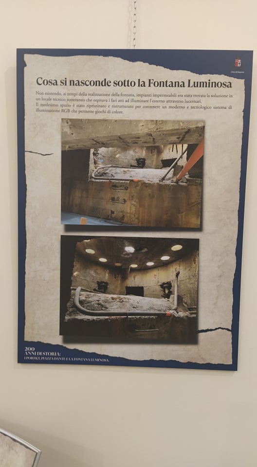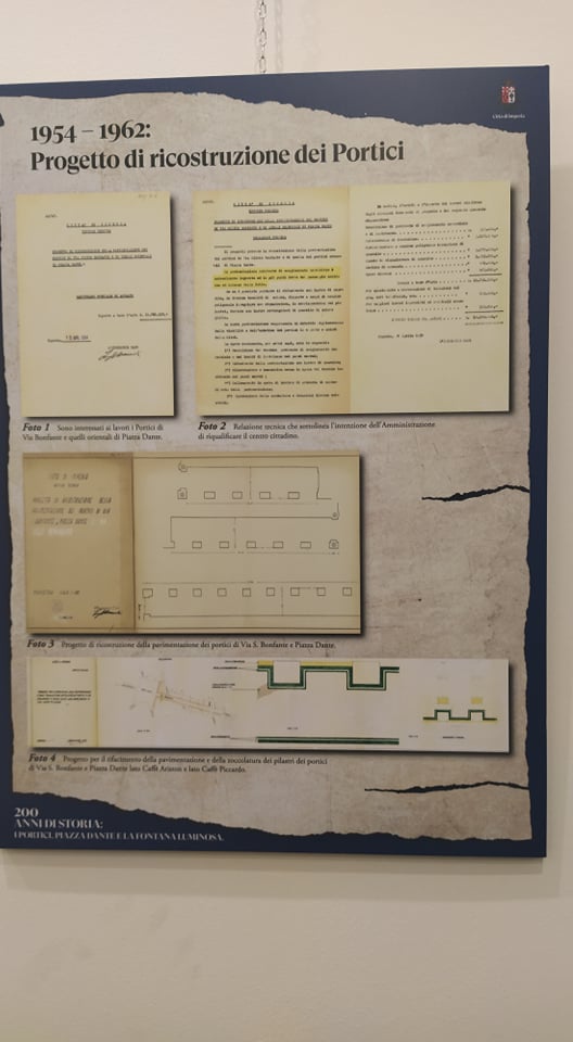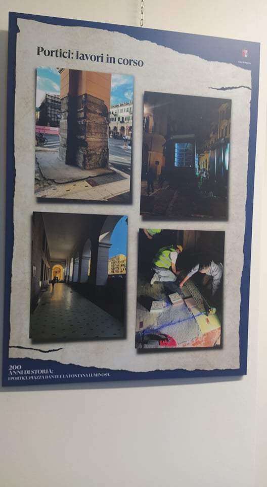 Poi siamo rimasti chiusi. questa mostra era pronta già da tempo, vuole far vedere nel suo percorso storico come era Piazza Dante, i portici e la fontana una volta.