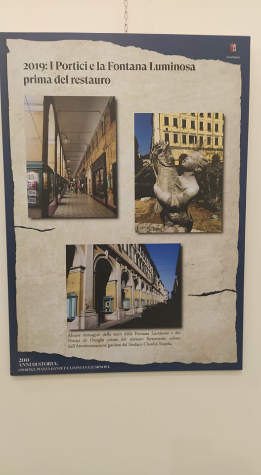È stata inaugurata nel tardo pomeriggio di oggi, giovedì 4 febbraio, nella Galleria Rondò, recentemente ristrutturata, la mostra “200 Anni di Storia: I Portici di Piazza Dante e la Fontana Luminosa”. Presente il sindaco Claudio Scajola e l’assessore Marcella Roggero.