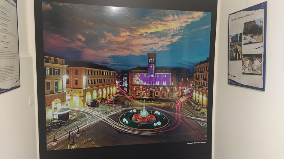 Appena riorganizzati abbiamo aperto questa mostra, che era già pronta per l’inaugurazione, che è stata poi arricchita da una immagine del maestro Benedusi, che immortala la nuova piazza.