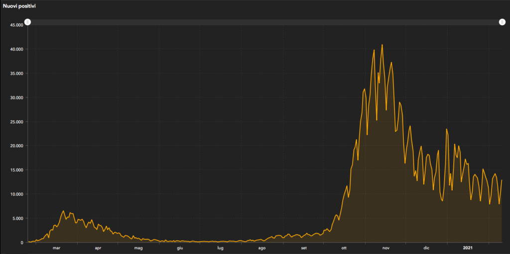 Sono 12.956 i nuovi casi di Coronavirus in Italia nelle ultime 24 ore, in diminuzione rispetto a ieri (7.970), 1.849 dei quali in Lombardia, che risulta, al momento, tra le regioni maggiormente interessate dall’emergenza Covid-19. A seguire Campania (1.635), Puglia (1.063), Lazio (1.027) ed Emilia Romagna (930). In Liguria i nuovi contagi sono 364 (ieri erano 257).