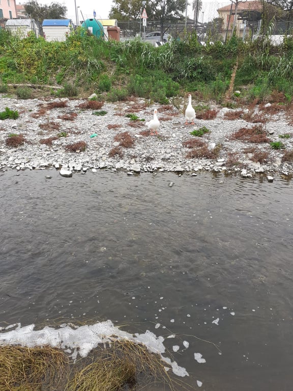 “È una situazione che si ripete ogni 2 settimane circa – spiega il comandante della polizia municipale di Diano Marina Franco Mistretta – Una specie di schiuma bianca arriva da monte e si accumula all’altezza del guado, ma non riusciamo a capire la fonte.