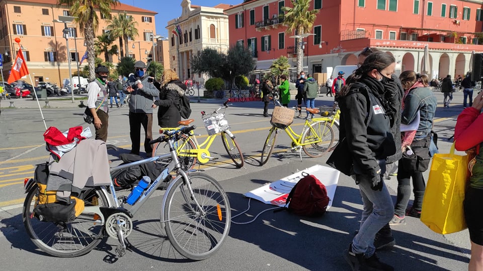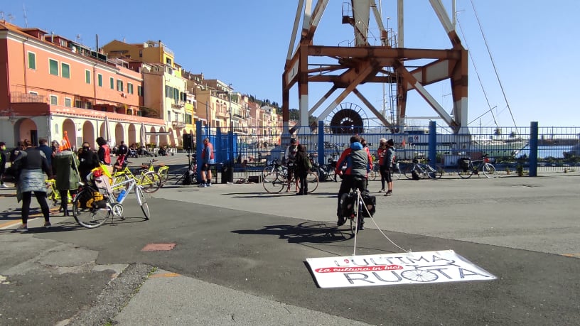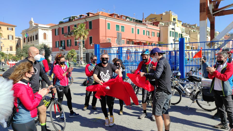E’ giunta in mattinata in Calata Cuneo la carovana de “L’Ultima ruota”, la pedalata organizzata da numerosi appartenenti al mondo dello spettacolo e della cultura, partita da Milano lo scorso 23 febbraio e attesa nel pomeriggio di oggi a Sanremo, con traguardo in piazza Colombo. Una pedalata nata per sensibilizzare Governo ed opinione pubblica sui problemi e sulle necessità di un comparto fermo oramai da un anno e attualmente con nessuna certezza e poche prospettive.