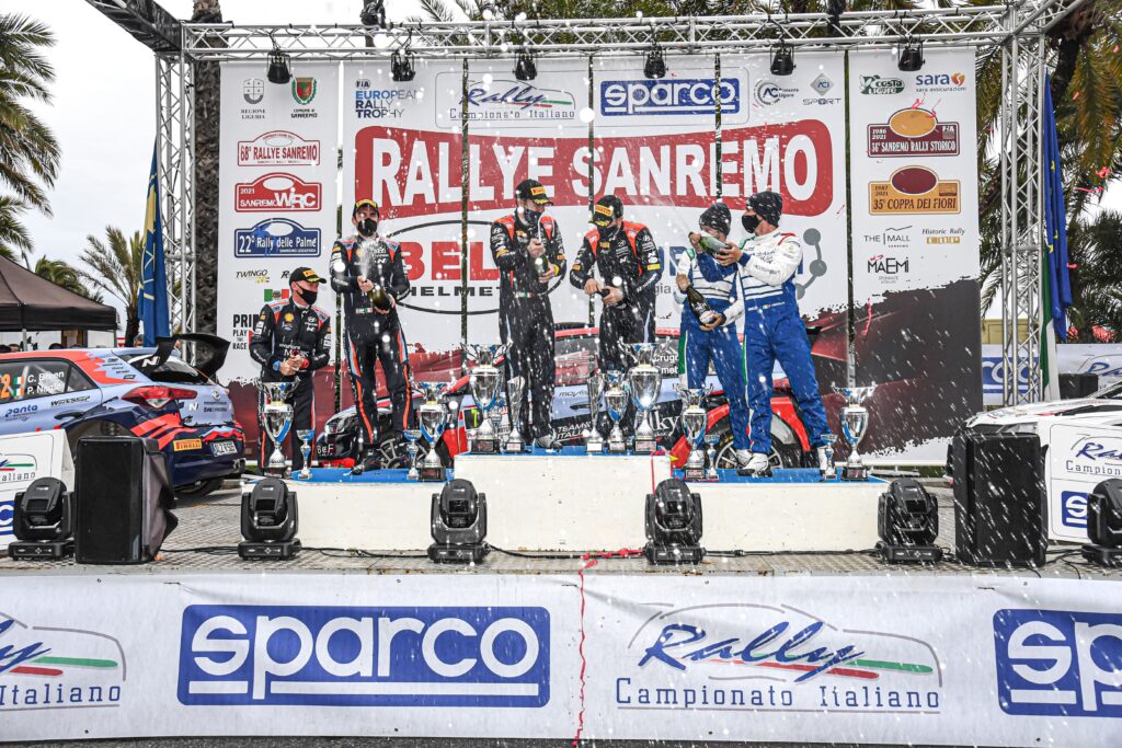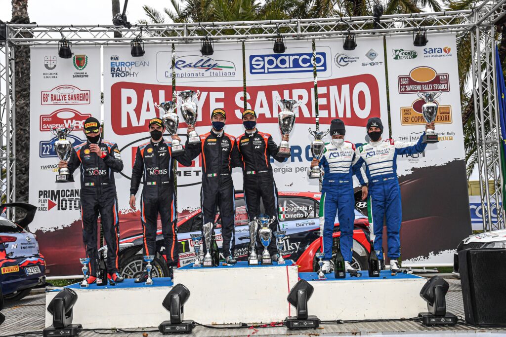 Sono stati Andrea Crugnola e Pietro Elia Ometto su Hyundai i20 R5 ha conquistare il gradino più alto del podio del 68° Rally di Sanremo, seguiti dai vincitori della scorsa edizione, Craig Breen e Paul Nagle sempre su Hyundai i20 R5 a 5″3. Sul terzo gradino del podio i liguri Fabio Andolfi e Stefano Savoia su Skoda Fabia R5 a 12″8.