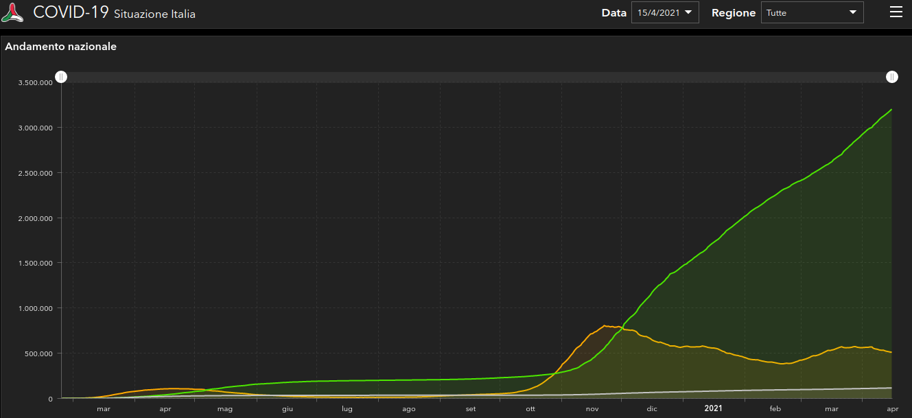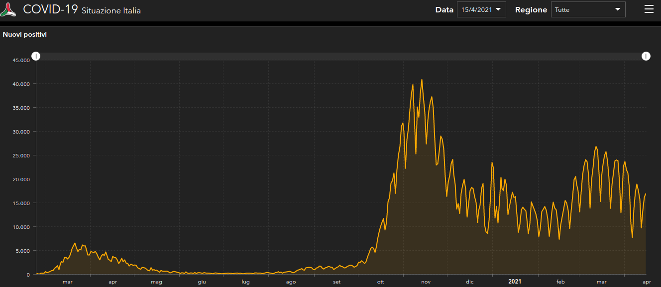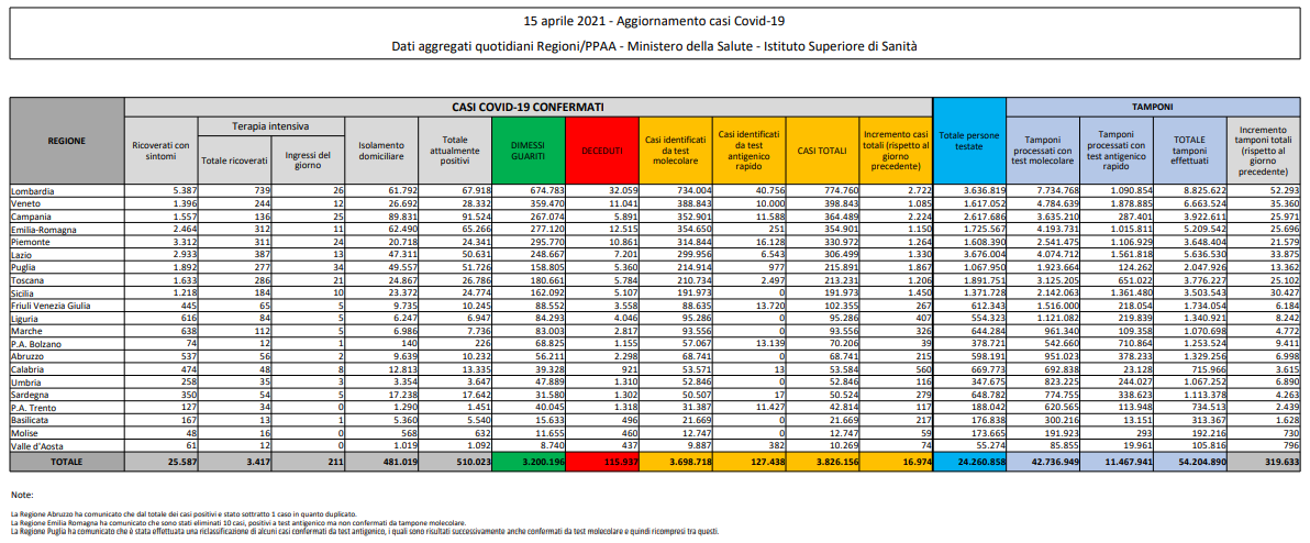 Coronavirus, Italia: il bollettino di giovedì 15 aprile 2021