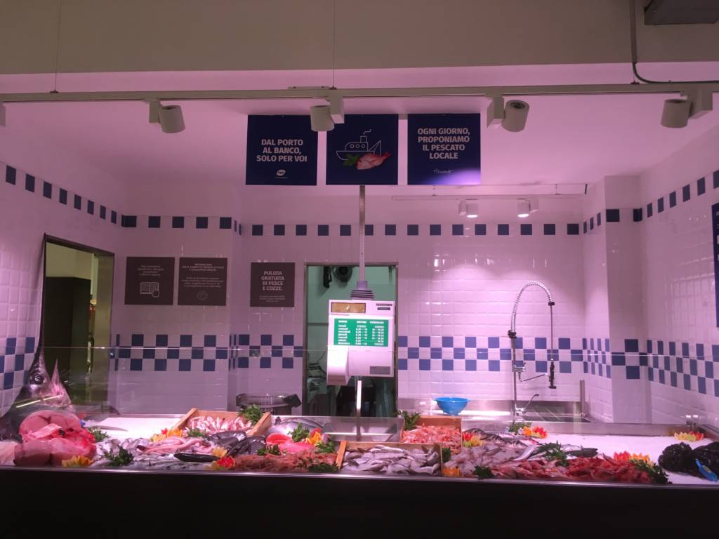 I reparti pescheria dei punti vendita di via della Repubblica e del Prino (zona campo di atletica) offrono una selezionata scelta di pescato locale con servizio gratuito di pulizia del pesce.