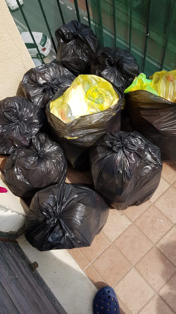 Il problema è che noi siamo 6 in famiglia, più un cane – continua – e stiamo accumulando i sacchi neri sul piccolo balconcino che abbiamo. Se non lo avessimo, non sapremmo proprio come fare. Oltretutto, dentro i sacchi ci sono anche le traversine del cane, che ovviamente non possiamo portare fuori per fare i bisogni, perciò l’odore si fa sentire. Fortunatamente non fa ancora caldo.