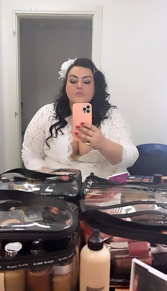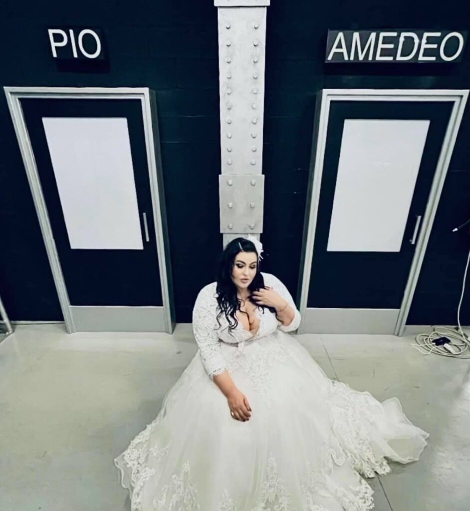 “Pio e Amedeo sono pugliesi e volevano realizzare una gag ricreando un classico matrimonio del sud – spiega Simona – per farlo quindi cercavano una sposa curvy, mora, elegante e di classe. Ho partecipato ai casting e mi hanno scelta. È stata una grande soddisfazione. Nella mia esibizione, dopo essere entrata in scena con lo sposo, ho fatto una mini sfilata per presentarmi al pubblico e poi mi sono scatenata in balli e canti con Amadeo, Pio, il padre della sposa e tutti gli invitati, mentre Tommaso Paradiso cantava per noi. È stato molto divertente e un’altra grande occasione di visibilità per me. Speriamo che sia solo l’inizio di una collaborazione con loro. Ringrazio tutti, costumisti, parrucchieri, truccatori. L’abito era pazzesco ed è stato realizzato apposta per me da un atelier di Milano”.