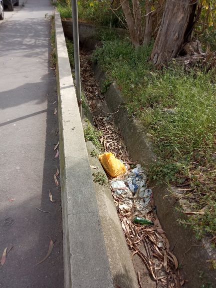 Le immagini si commentano da sole; qui, non solo si possono incontrare escrementi dei nostri Amici a quattro zampe ma sacchetti colmi di immondizia, lattine, contenitori di ogni genere che vengono gettati con totale indifferenza nella cunetta a lato marciapiede destinata a raccogliere e smaltire l’acqua piovana, una cunetta che, seppur ampia, tra non molto non sarà più in grado di assolvere al proprio compito in quanto i punti di scarico sono già intasati dalla suddetta immondizia e da erbacce e cumuli di fogliame secco che, anche in questo caso, da anni non vengono raccolti e smaltiti.