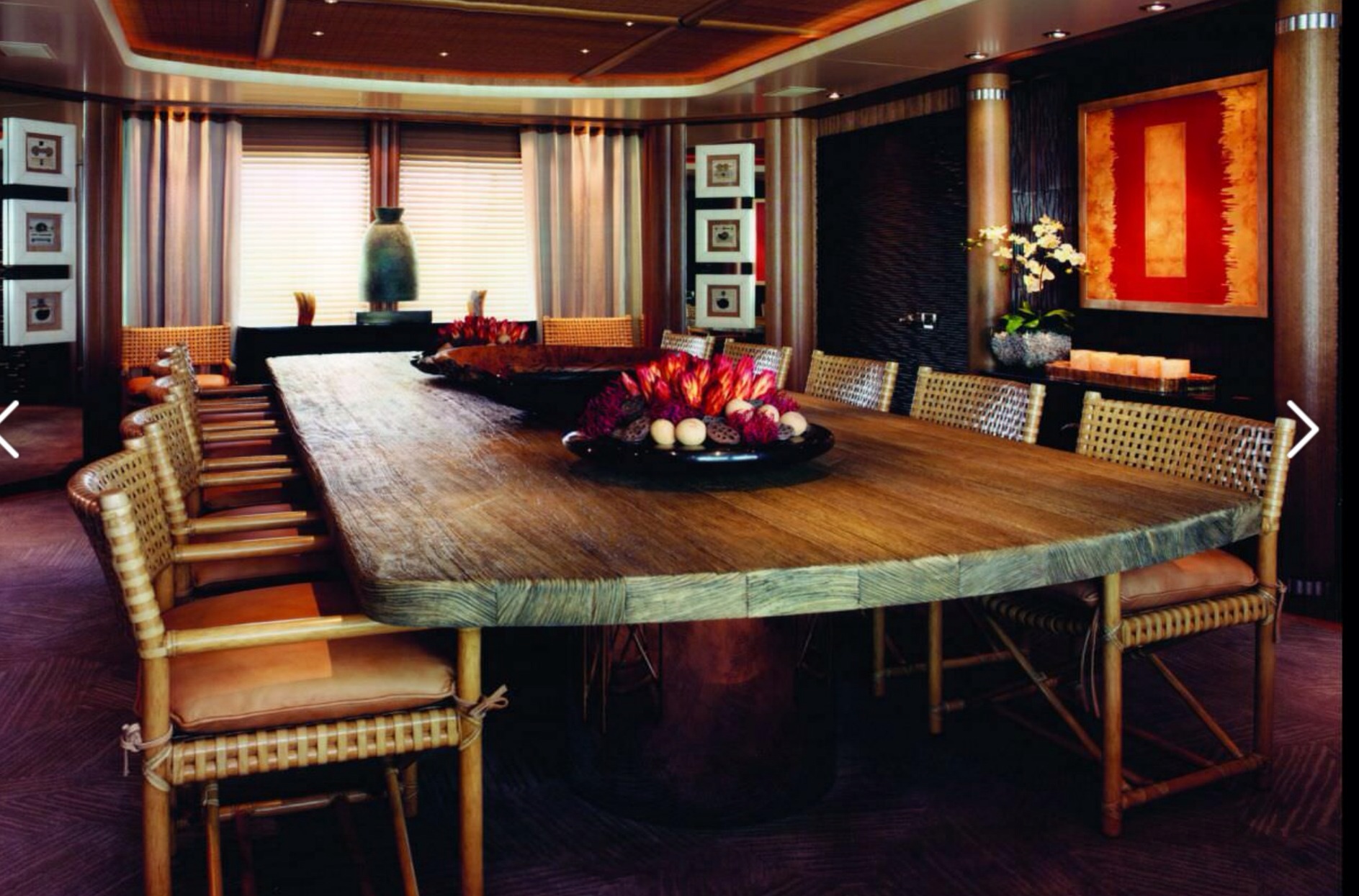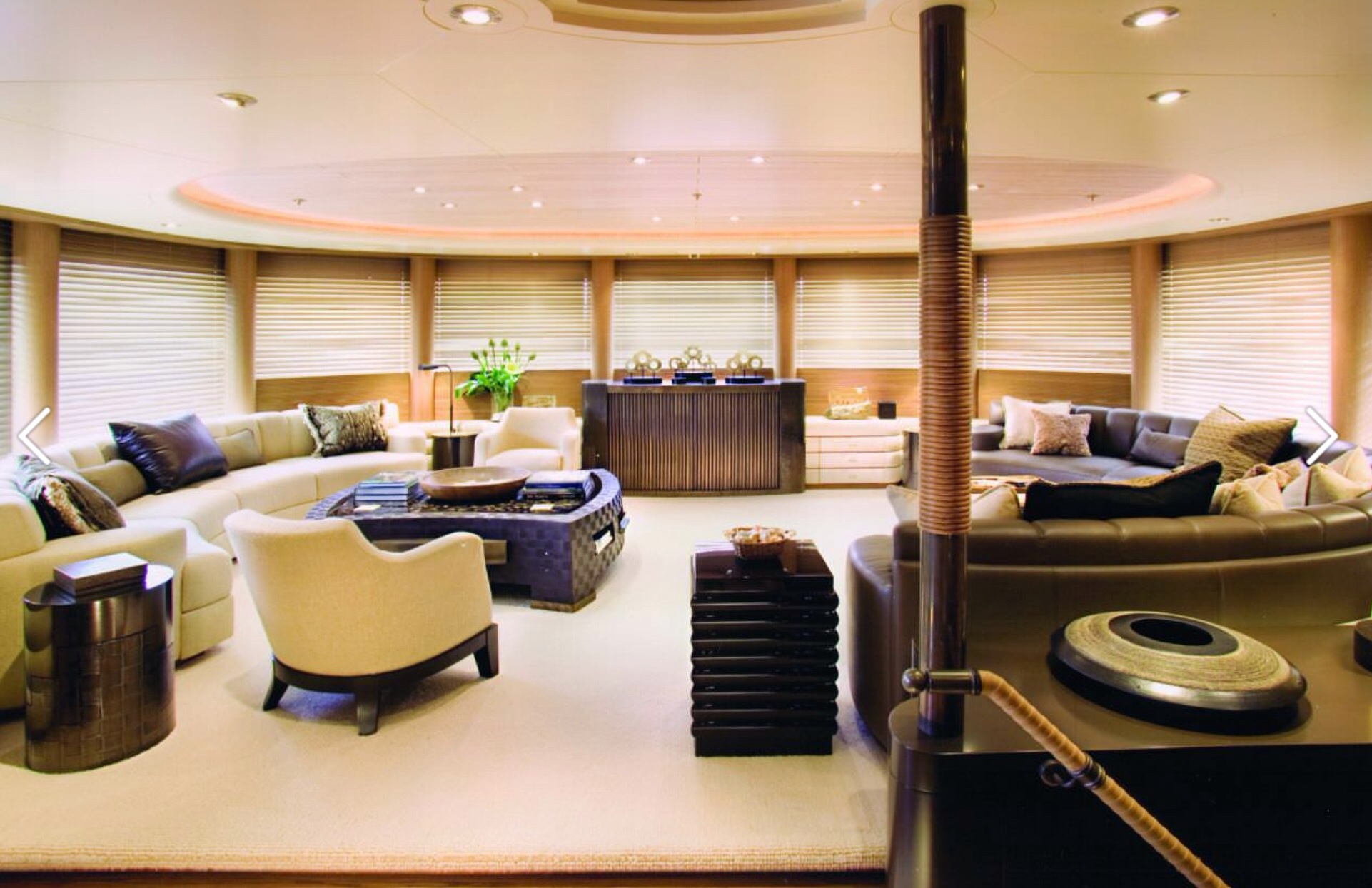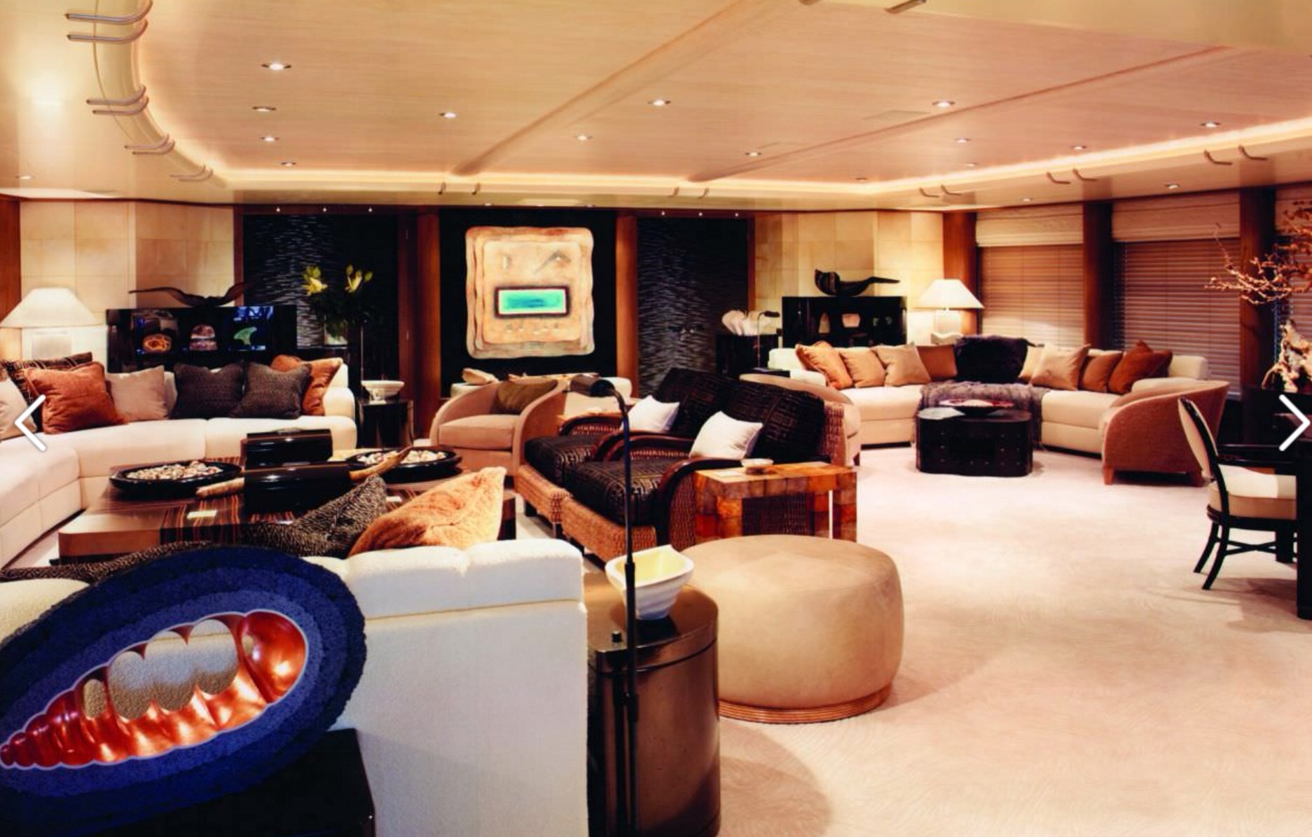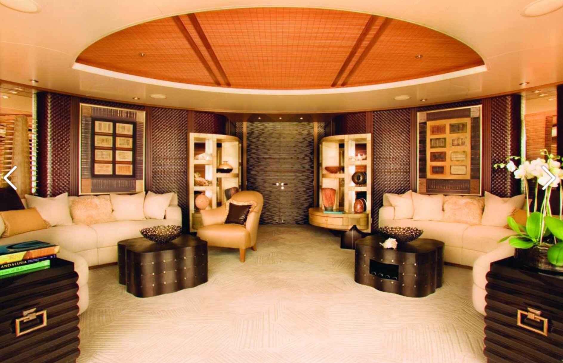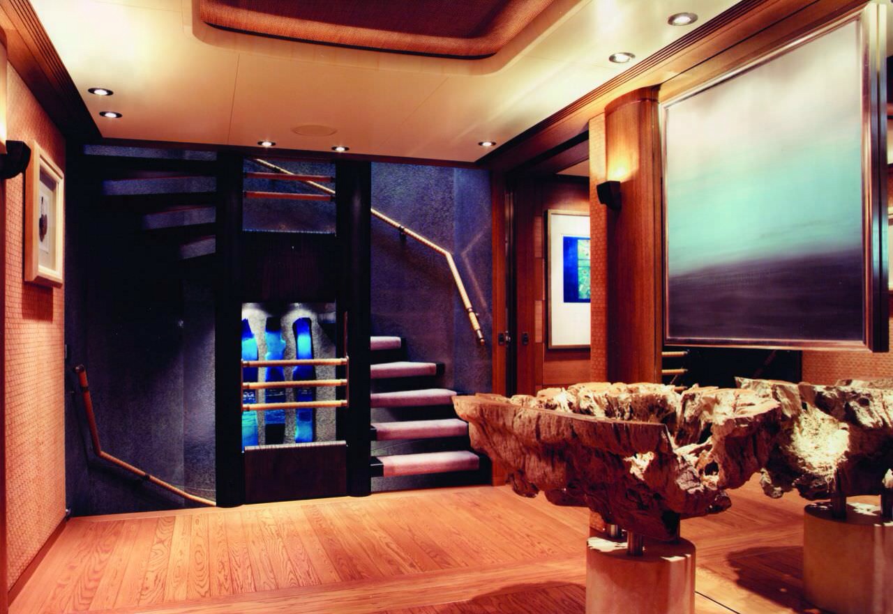 Oltre a una pista di atterraggio per l’elicottero, “Ecstasea” può contare su una sauna, una discoteca e un bagno turco. Il pavimento è in marmo e gli interni sono in legno di bambù.