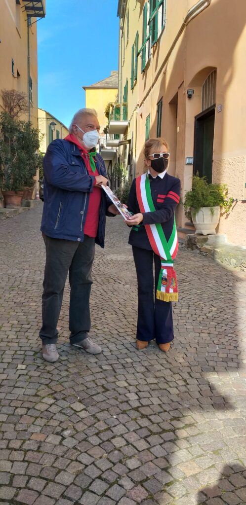 Zefferino Ardissone ha consegnato al Sindaco Lina Cha una pubblicazione dell’ANPI che raccoglie elaborati del concorso dedicato al 25 Aprile a partire dal 2011 e riservato agli alunni dell’Istituto Comprensivo dianese, e alcune tra le più significative poesie di Maria Musso, poetessa di Diano Arentino deportata nei campi di concentramento in Germania.