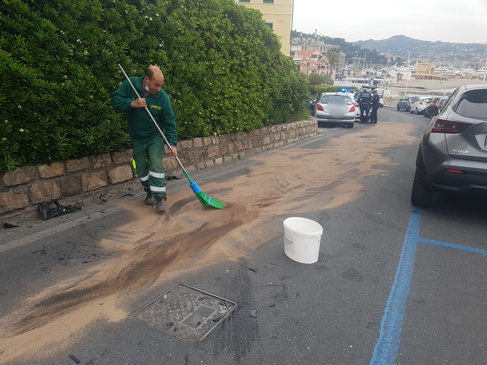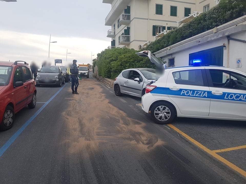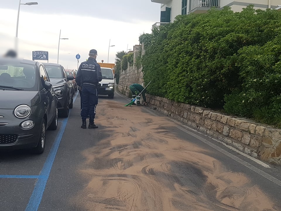 Via Boine chiusa al traffico per oltre un’ora, questo pomeriggio, per via di un’auto che, a seguito di un incidente, ha perso olio e benzina. La Polizia Municipale, intervenuta sul posto, ha disposto la chiusura della strada per via dell’asfalto scivoloso. E’ successo nel tardo pomeriggio di oggi, 25 aprile, a Imperia.