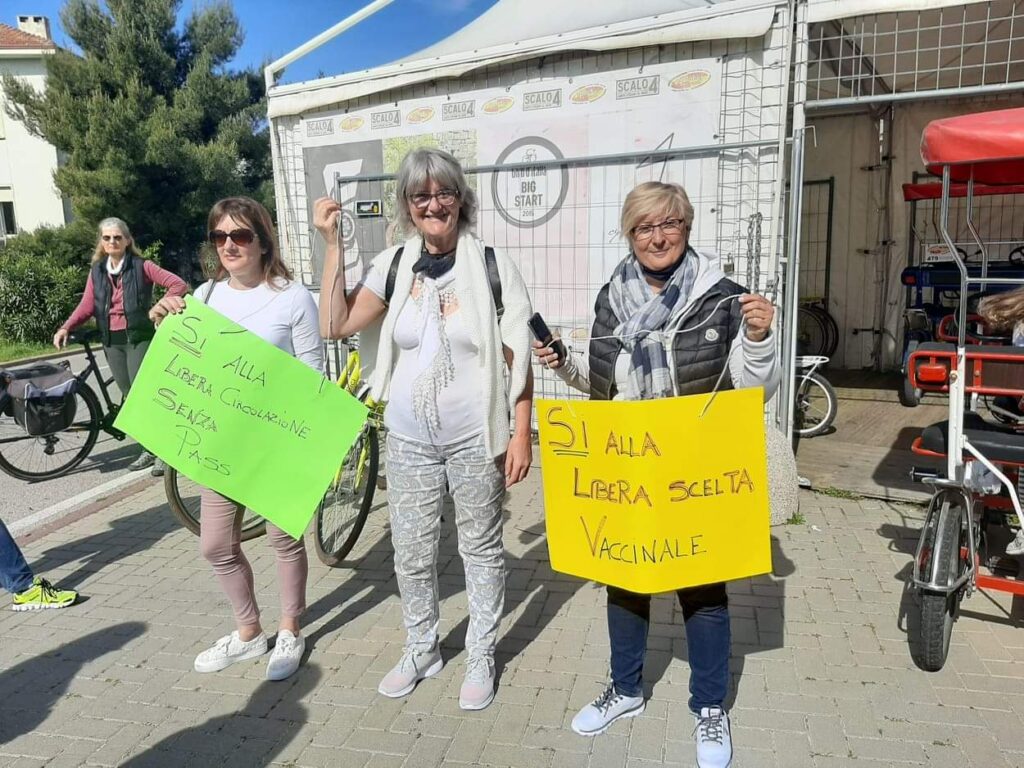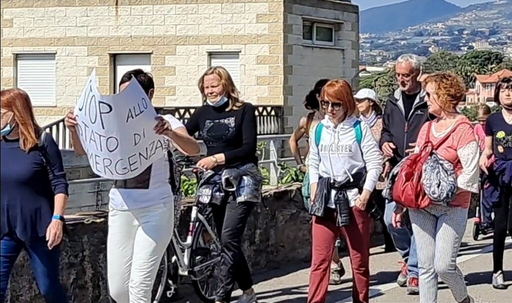 Circa un centinaio di persone hanno accolto l’appello di Simona, Avery, Candida e Loredana, presentandosi sulla pista ciclabile tra Sanremo e Santo Stefano al Mare, con l’intento di manifestare la propria volontà a un ritorno alla normalità, senza più limitazioni alla libertà personale.