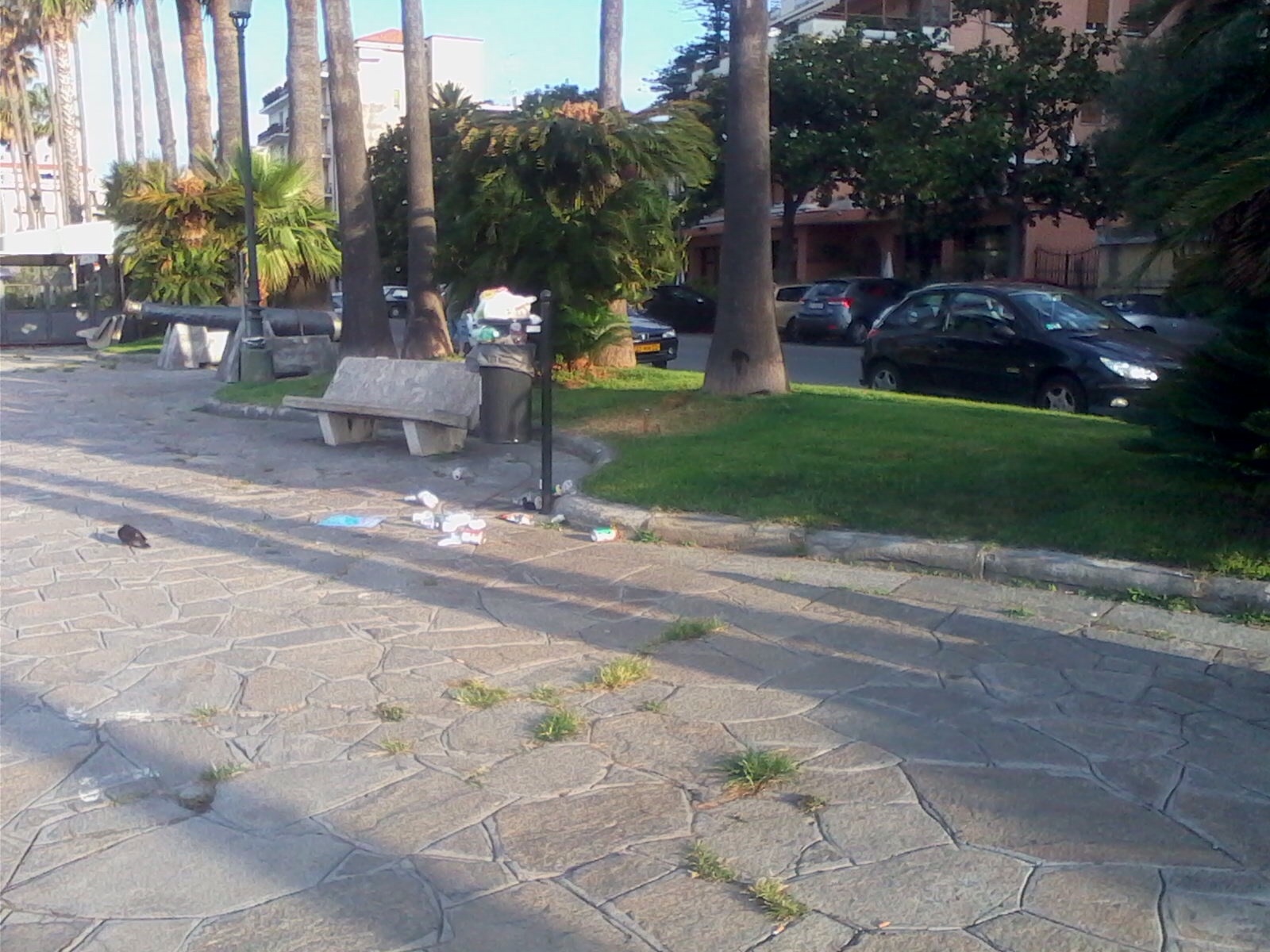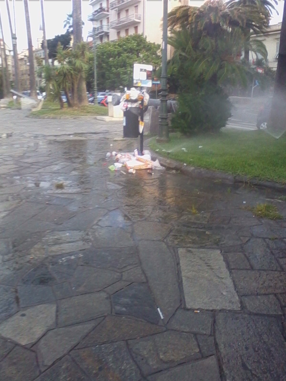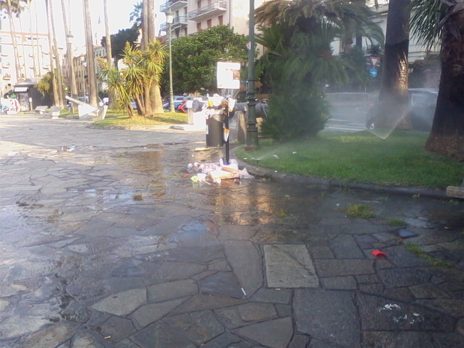 Un nostro lettore, Massimo Scrimaglio, ha inviato alla nostra redazione una mail per lamentare la scarsa funzionalità del servizio di raccolta rifiuti gestito della Tradeco, nonché per evidenziare le colpe dell’amministrazione comunale. Allegate alla lettera le immagini del degrado in Spianata Borgo Peri, dove a peggiorare la situazione di é aggiunto un irrigatore impazzito che ha allagato parte della passeggiata.