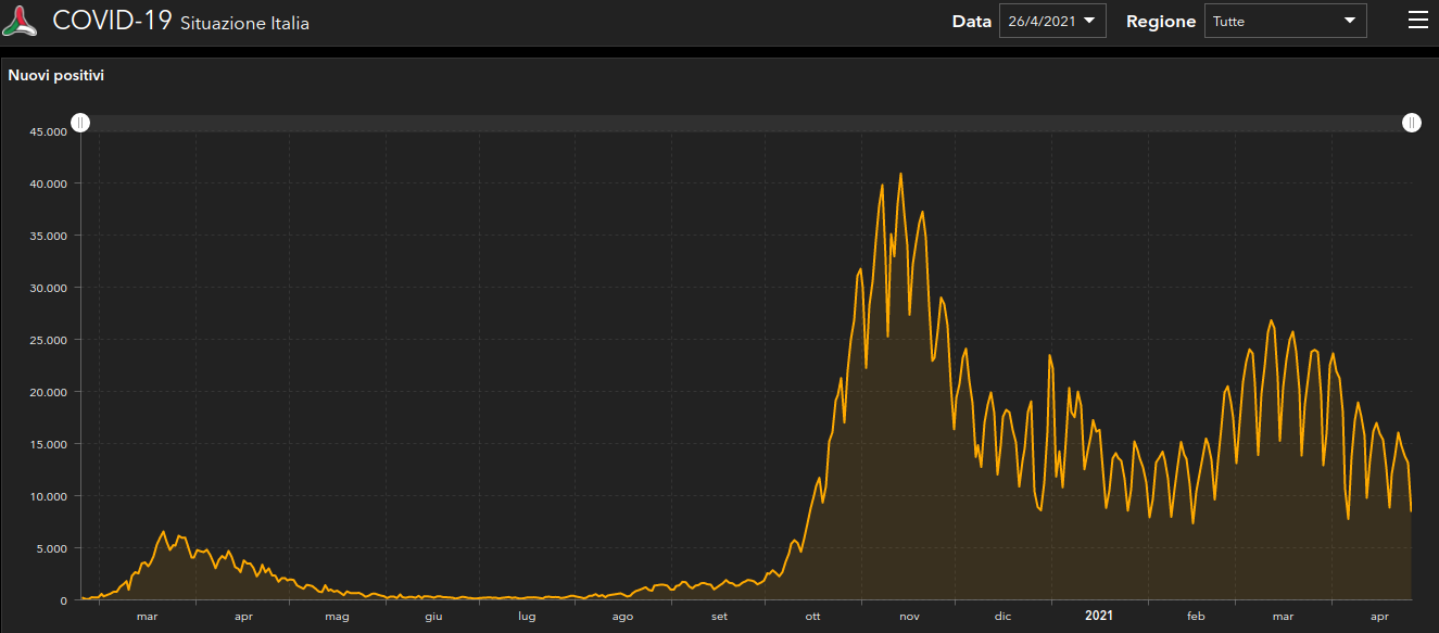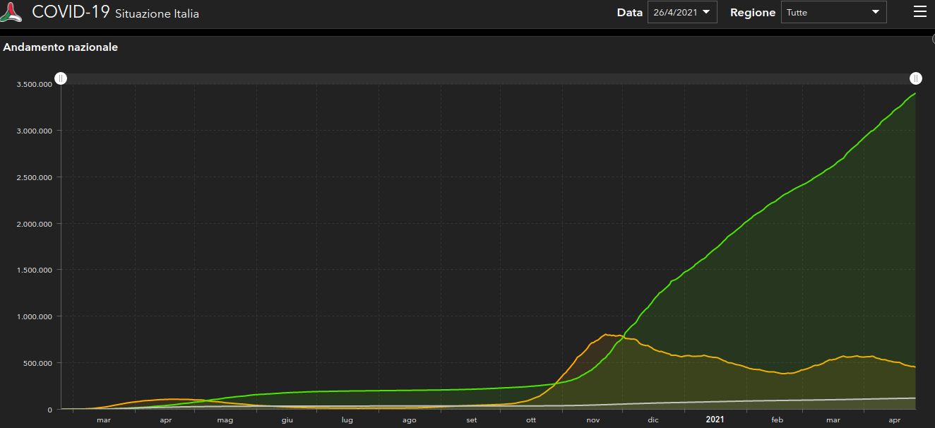 Coronavirus, Italia: il bollettino di lunedì 26 aprile 2021