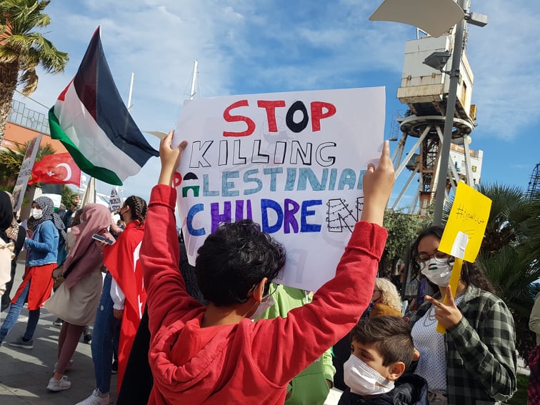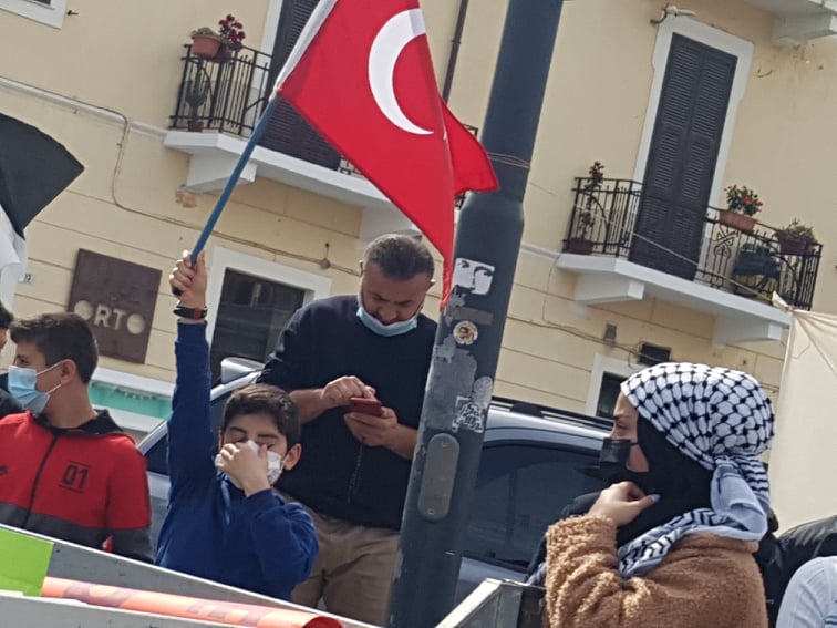 Oggi stanno manifestando non solo i musulmani, ma anche amici e fratelli e compagni di ogni genere che hanno a cuore la giustizia la libertà, a favore del popolo palestinese contro l’aggressione sionista”.