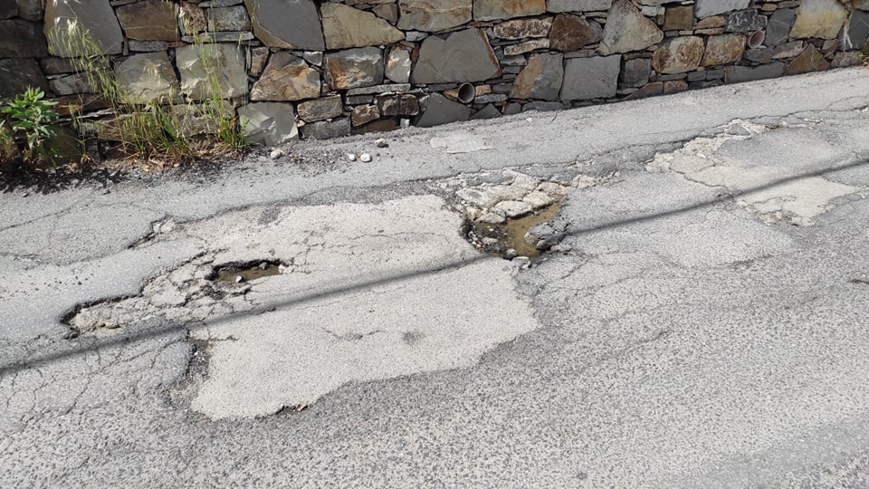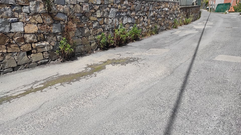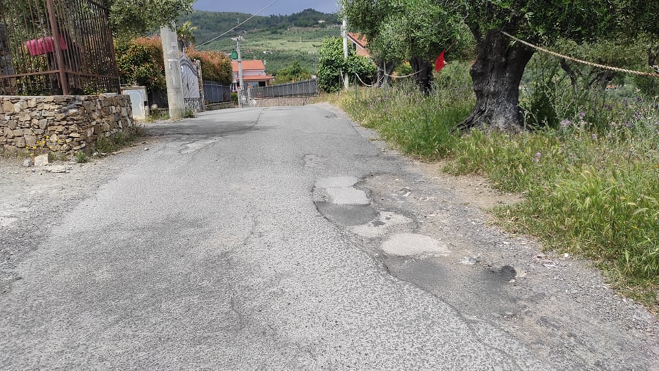 Protestano i residenti di strada Ciosa, a Caramagna, frazione di Imperia, per le difficili condizioni dell’asfalto.