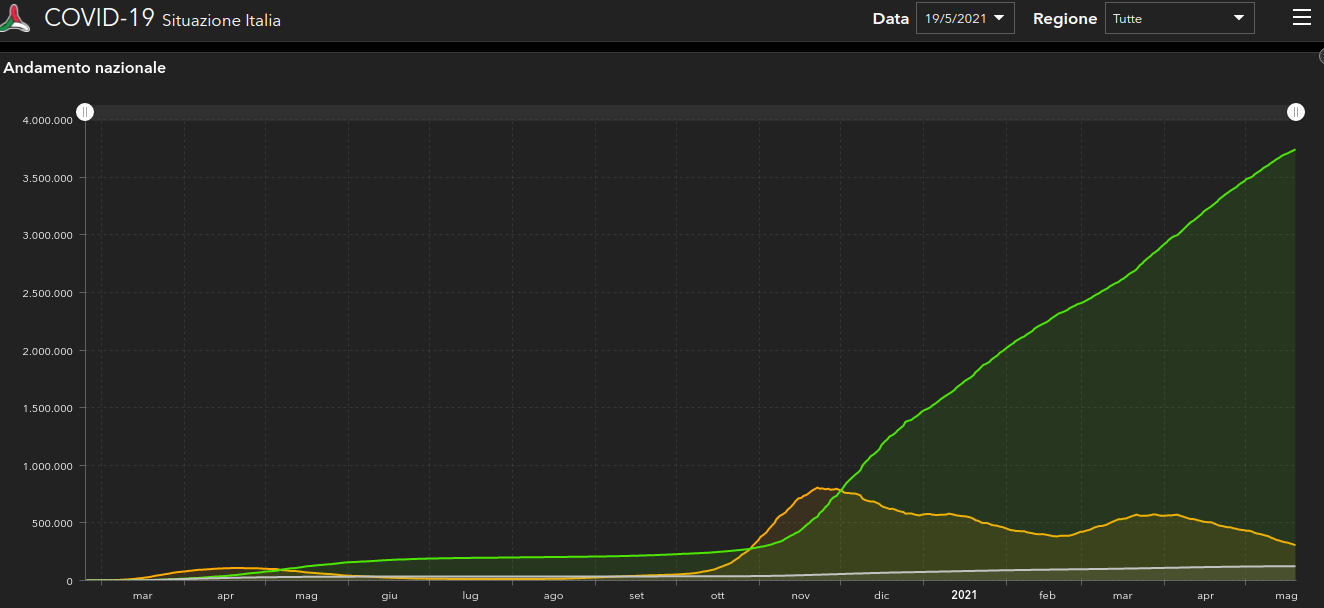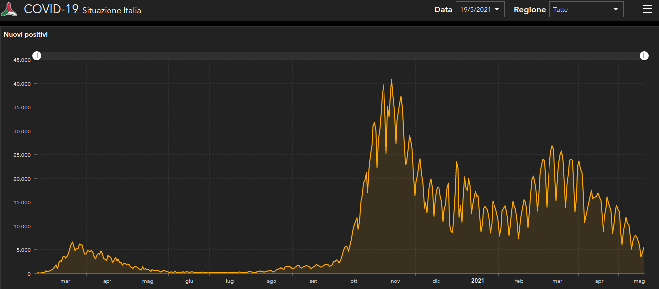 Coronavirus, Italia: il bollettino di giovedì 20 maggio 2021