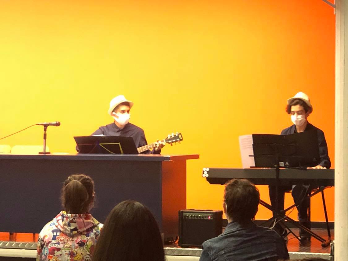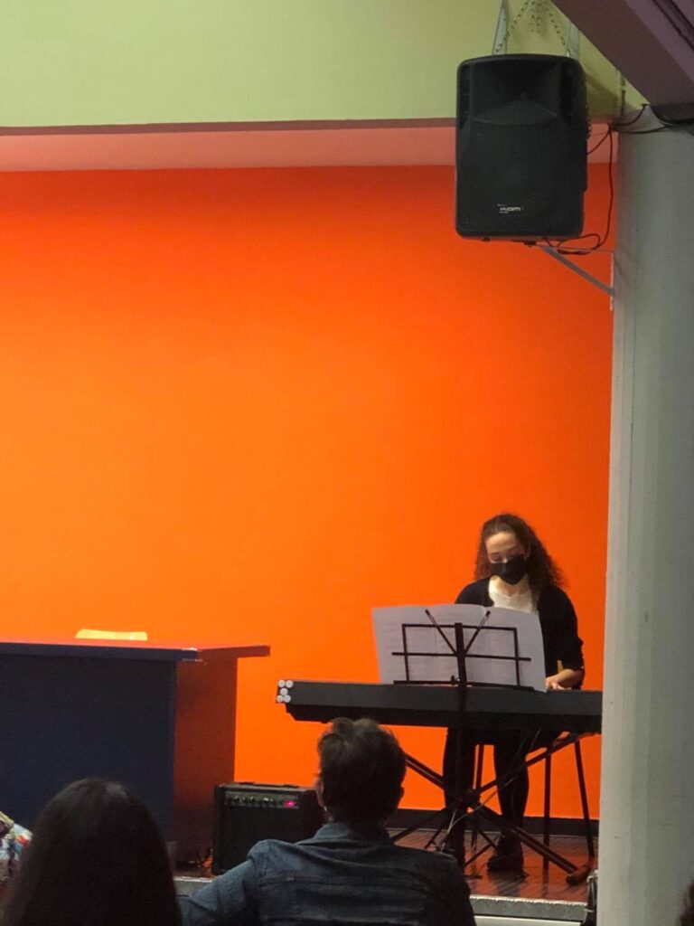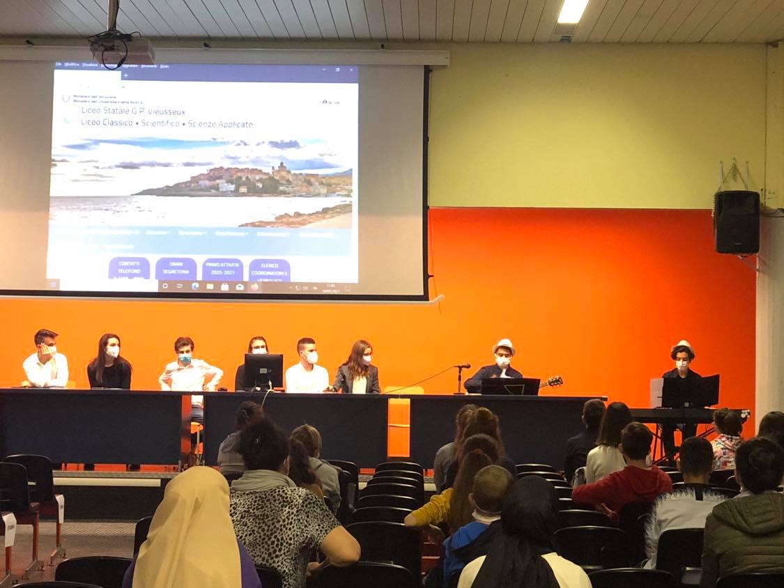 Alcuni ragazzi del Liceo hanno proposto un breve momento musicale di benvenuto: si sono esibiti in un medley (Margutti, De Andre, Modugno) e in The Sound Of Silence (Simon e Garfunkel) il duo chitarra e pianoforte composto da Francesco Russo e Giuseppe Bianchi; nel finale Silvia Canova ha meravigliosamente interpretato “tenerezza” di Vesnyack.