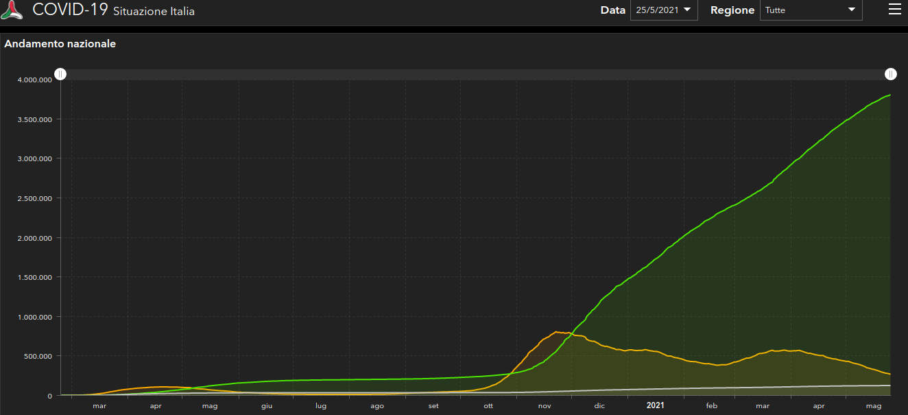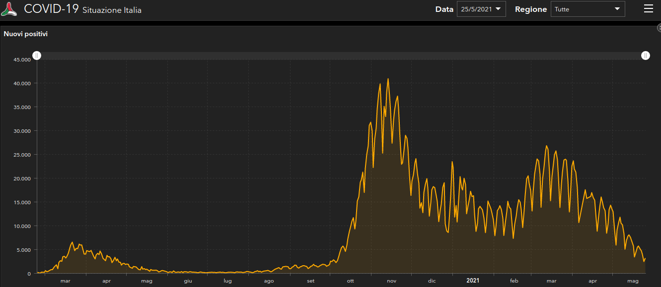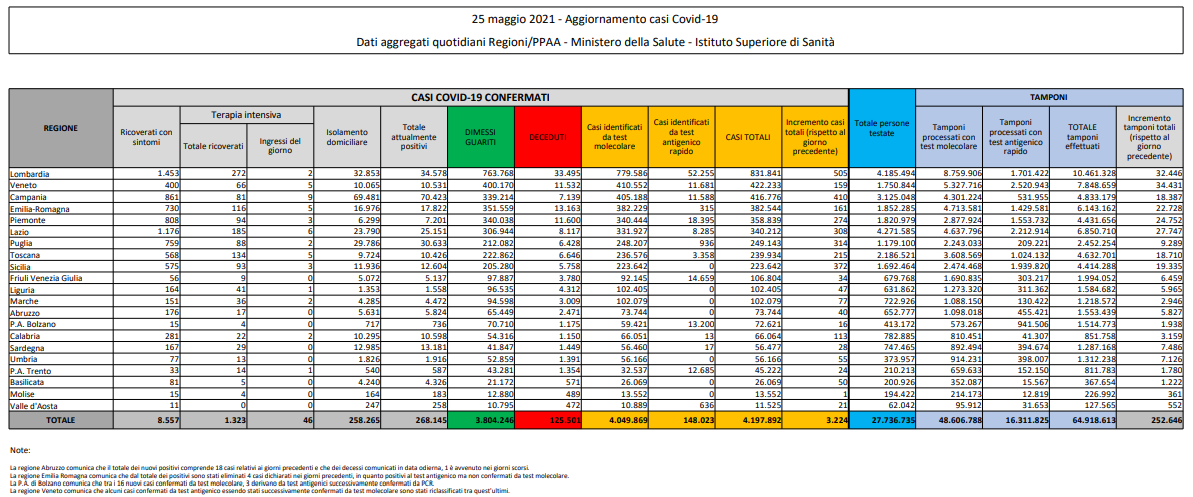 Coronavirus, Italia: il bollettino di martedì 25 maggio 2021