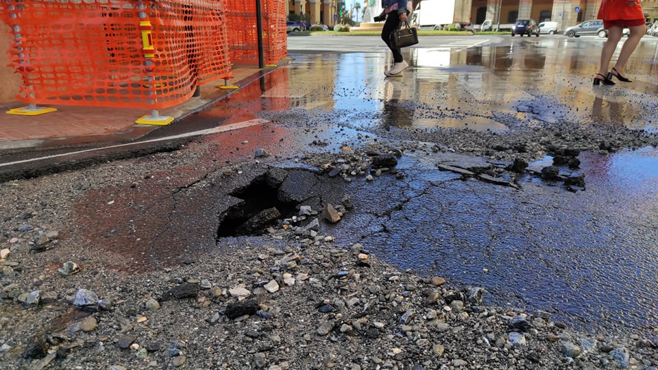 Verso le 9 di questa mattina, si è verificato un nuovo guasto all’acquedotto. Per cause ancora in fase di accertamento, dall’asfalto, divelto, è scaturito un getto d’acqua che ha rapidamente allagato la strada.