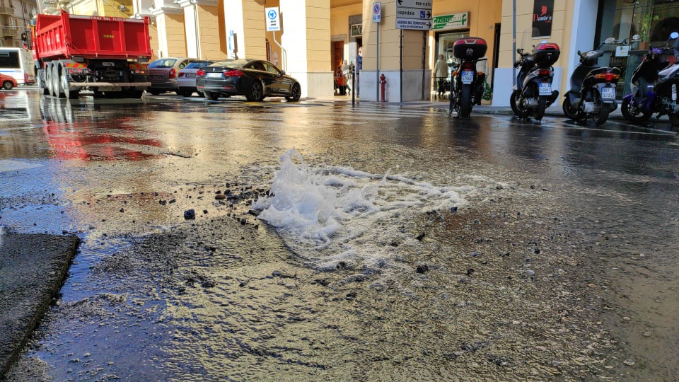 Un altro, l’ennesimo, guasto all’acquedotto a Imperia. È successo questa mattina, tra piazza Dante e via Berio. La rottura di un tubo ha provocato l‘allagamento della strada e disagi nella viabilità.