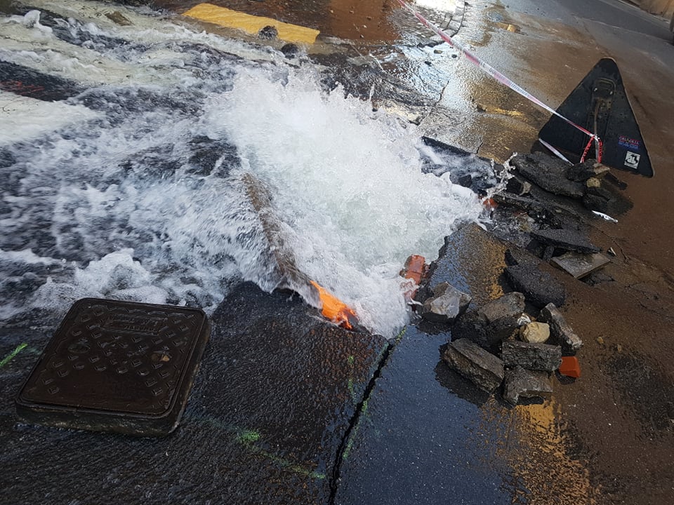 L’asfalto presenta una profonda ed evidente spaccatura causata dalla pressione dell’acqua. Interi quartieri della città, nel comprensorio di Porto, comprese le scuole (non sono però previste chiusure) sono attualmente a secco. I tecnici, che hanno interrotto l’erogazione dell’acqua, stanno verificano l’entità del danno.