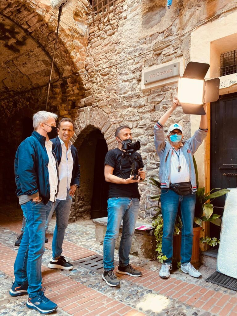 “Comune Dolceacqua, termina una giornata di riprese. Qualche ora di sonno e si riparte , ci aspetta il Castello. Domani (oggi, ndr) rischiamo la pioggia, vi faremo sapere” si legge sulla pagina ufficiale di Uccio de Santis. A corredo del post immagini che testimoniano la giornata di lavoro nei meravigliosi scorci di Dolceacqua.
