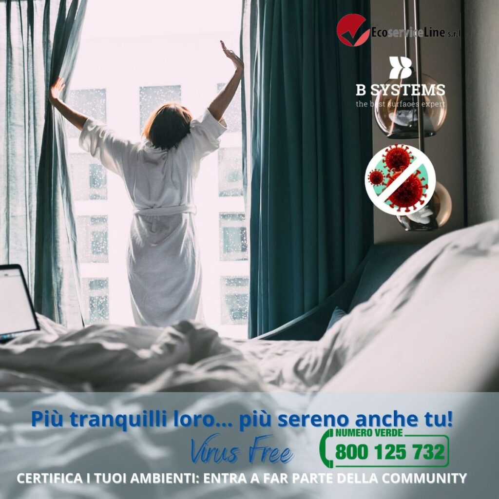 Spiegano alla EcoserviceLine: “L’attuale situazione dovuta al Covid-19 ci ha portato a prendere maggiore coscienza riguardo alla cura della nostra salute e di quella delle altre persone. Per evitare all’infezioni di diffondersi, oltre alle misure indicate dall’OMS per l’igiene personale e il distanziamento sociale, bisogna mantenere alta l’attenzione sull’igieinizzazione e sanificazione di tutte le superfici con cui veniamo a contatto, dei nostri ambienti domestici e lavorativi. I prodotti BSystems che impieghiamo, alle proprietà antibatteriche delle nanoparticelle di titanio, aggiungono un’azione sanificante e virucida, garantendo così superfici igienizzate e sanificate secondo normativa ministeriale. Oltretutto non sono prodotti nocivi e non inquinano. Le superfici trattate restano quindi sanificate in modo permanente e il cliente riceverà un kit di manutenzione con prodotti per parti alte e pavimenti, che dovrà impiegare al posto dei tradizionali prodotti di pulizia. In questo modo con le semplici pulizie ordinarie verrà mantenuto inalterato il potere Covidfree del trattamento iniziale”.