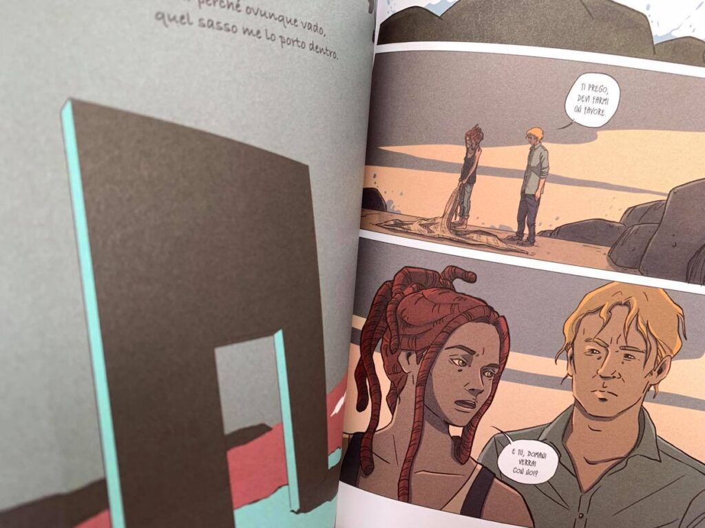 Parlando de “La Memoria delle Taratarughe”, Simona Binni sottolinea: “Quando ho pensato questa storia non avevo la presunzione di raccontare una storia di migranti, che è un tema forte e difficile da affrontare, però mi piaceva raccontare una storia minore, di un uomo che ritorna a casa e ritrova la sua Lampedusa, con la quale vive un rapporto contrastato. Mi piaceva moltissimo l’idea di inserire questa storia in una cornice sociale importante e simbolica come Lampedusa. Il lavoro del fumettista è molto solitario, passiamo moltissime ore a casa, praticamente facciamo uno smart working da sempre e ci si può dimenticare che ci sia un fuori. L’idea di inserire la mia storia nella cornice di Lampedusa vuole dire un po’ questo, attraverso le storie comunicare qualcosa di importante e riflettere sul mondo, in questo caso anche attraverso i disegni e il colore“.