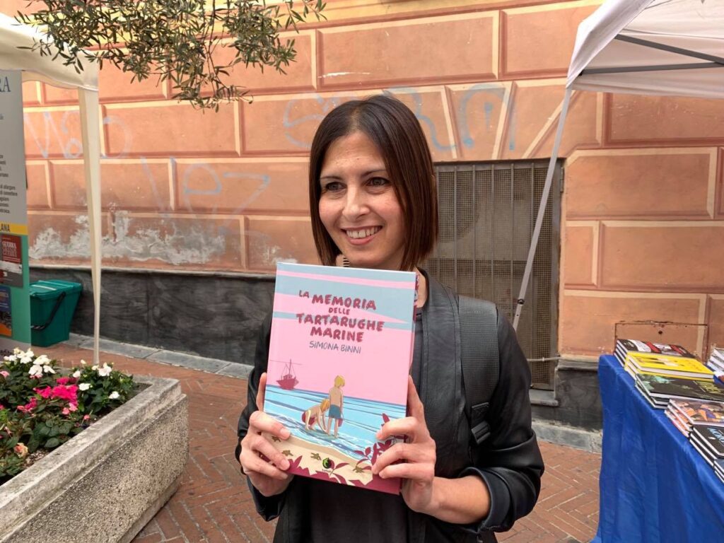 Simona Binni, laureata in Psicologia dell’età evolutiva, diplomata alla Scuola romana di fumetti ha al suo attivo importanti lavori come storyboard artist nella pubblicità, collaborazioni con il Giffoni film festival e con Roma film accademy e ora è legata alle edizioni Tunué, con le quali ha pubblicato Anima e il vulcano, vincitore al Romics 2015 del premio come “miglior esordiente”, Dammi la mano, Silverwood Lake e la sua opera, in presentazione a Imperia, La memoria delle tartarughe marine. Una storia illustrata che ha per cornice la Lampedusa dell’immigrazione.