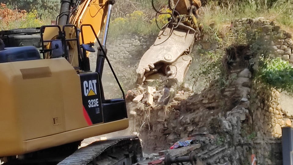 Sul posto gli operai della ditta ELTE srl di Milano. La demolizione viene effettuata per opera di un escavatore a pinza mordente e durerà circa tre giorni. Per ripulire l’area dai detriti occorrerà invece circa una settimana.