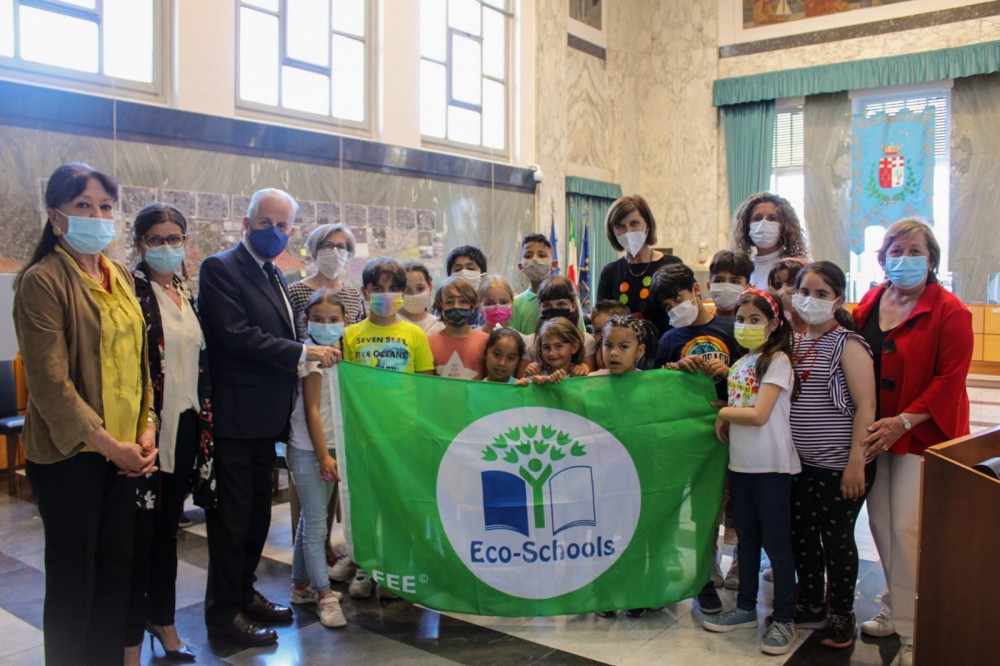 La cerimonia di consegna della Bandiera si è svolta nel Salone del Consiglio Comunale di Imperia, alla presenza del Sindaco Claudio Scajola, dell’assessore all’Ambiente Laura Gandolfo, delle responsabili del progetto Eco-Schools Albina Sevastano e Maria Drì e delle insegnanti coinvolte, Isabella Gavi e Orietta Zaffoni.
