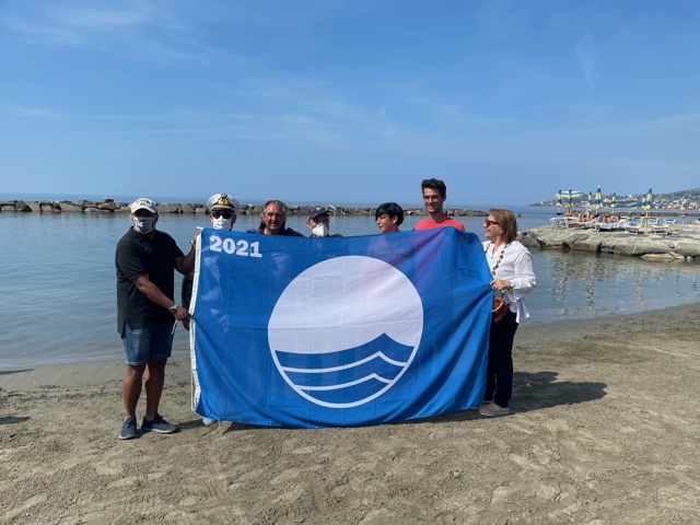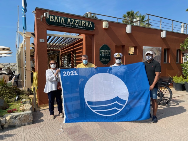 Lo scorso 10 maggio il comune di Santo Stefano al Mare ha ufficialmente ottenuto la sua ottava Bandiera Blu da parte della FEE. Questa mattina, alla presenza di una delegazione della Capitaneria di Porto, dell’Assessore a turismo e manifestazioni Maria Teresa Garibaldi, del consigliere delegato all’ambiente Remo Ferretti e della polizia municipale, le bandiere sono state materialmente consegnate agli stabilimenti “Baia Azzurra” e “Il Vascello”.