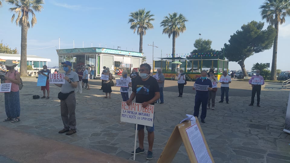 Trenta “Sentinelle in Piedi” hanno preso parte questo pomeriggio, in Spianata Borgo Peri, a Imperia Oneglia, alla protesta silenziosa contro il DDL Zan sull’omotransfobia.