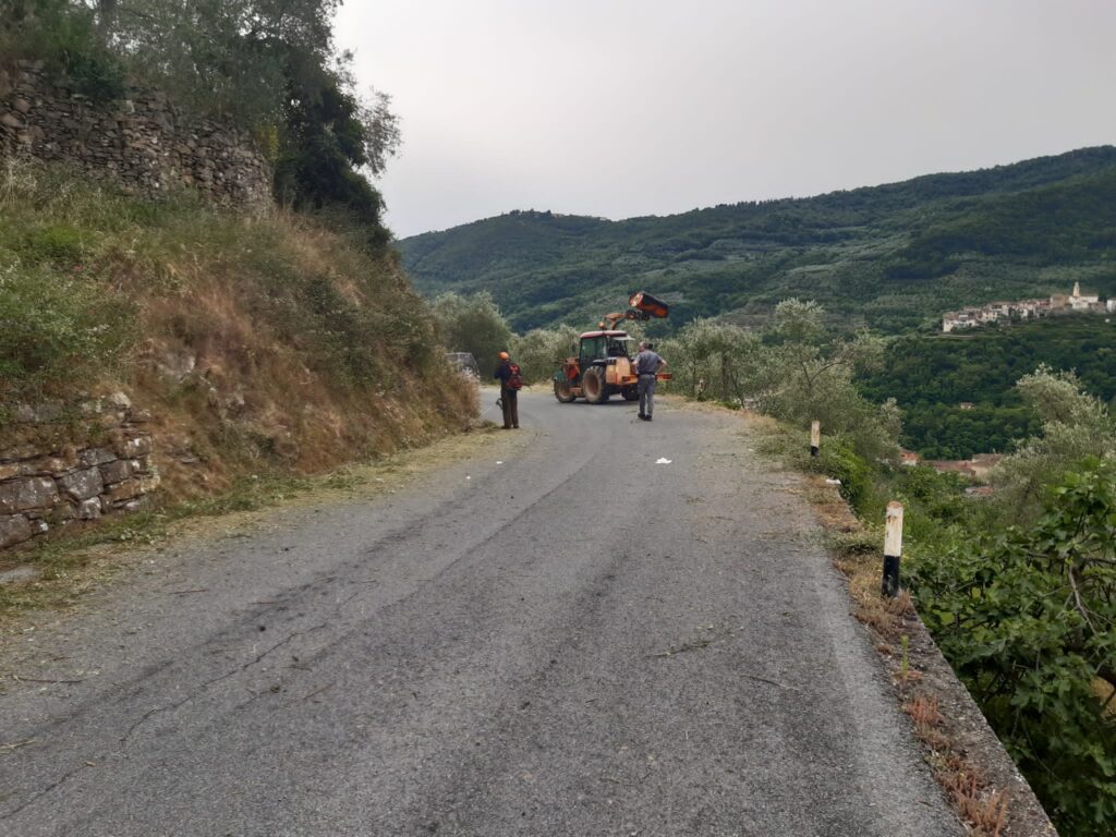 Nella mattinata un gruppo di volontari del comune di Aurigo e della frazione Poggialto, alla presenza del sindaco Luigino Dellerba, coordinati dal Vicesindaco Pier Carlo Gandolfo, che è anche tecnico dell’ufficio Strade della Provincia di Imperia, hanno effettuato lo sfalcio della strada provinciale n. 26 da Borgomaro a Poggialto, al fine di rendere decoroso ed in sicurezza l’accesso ai centri abitati di Aurigo e Poggialto.
