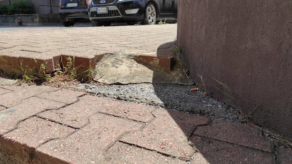 “La pavimentazione sconnessa è pericolosa, soprattutto per bambini e anziani”. Questa la preoccupazione delle famiglie che frequentano il parco giochi in via Vecchia Piemonte.