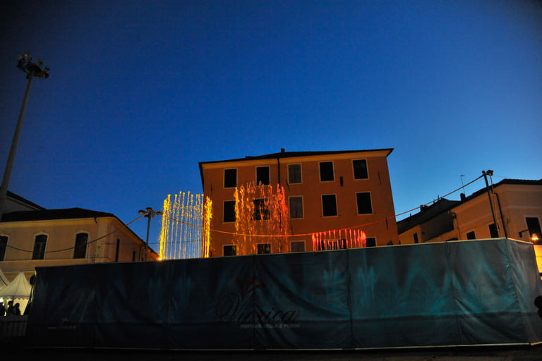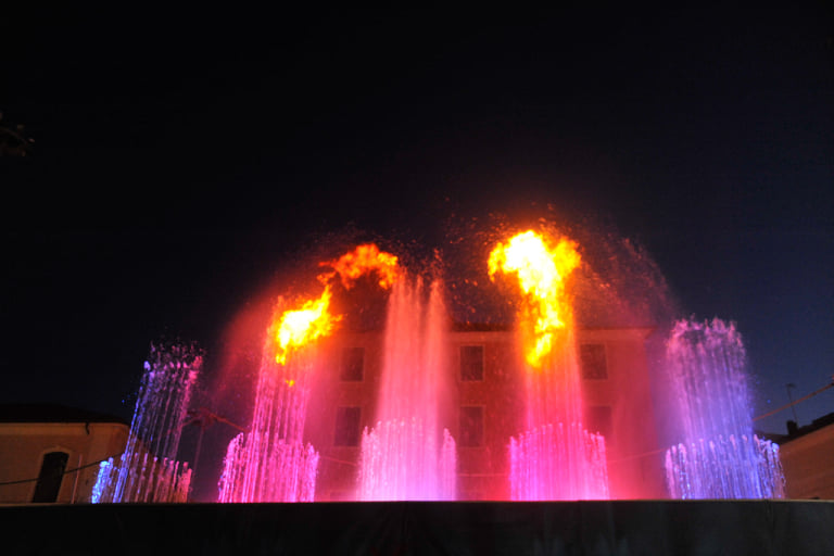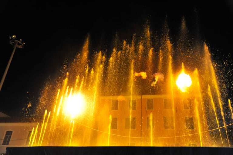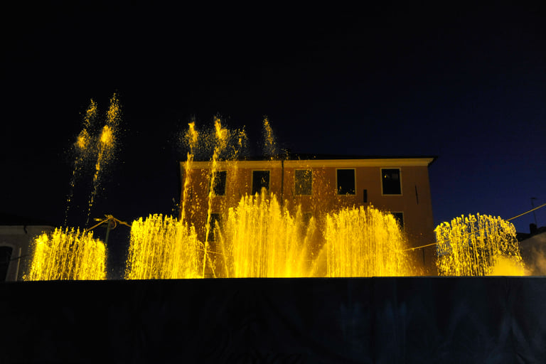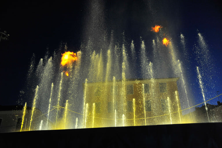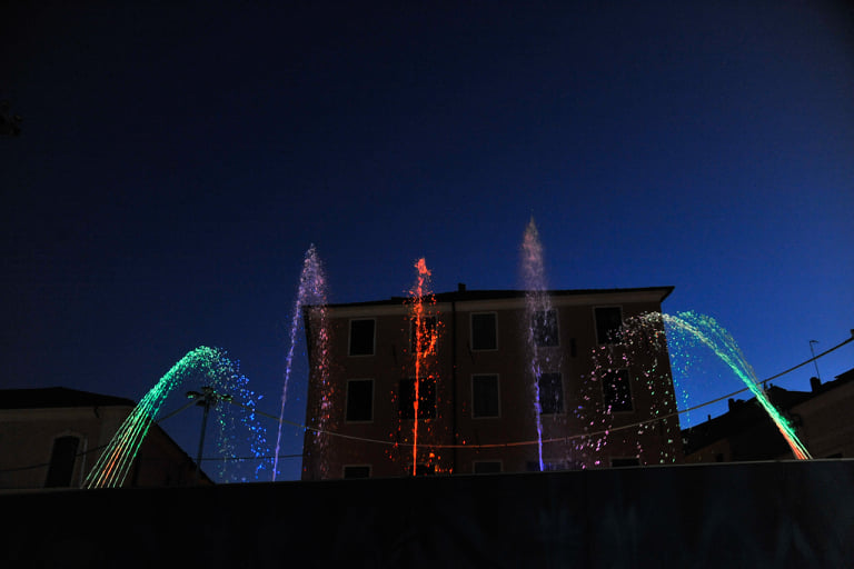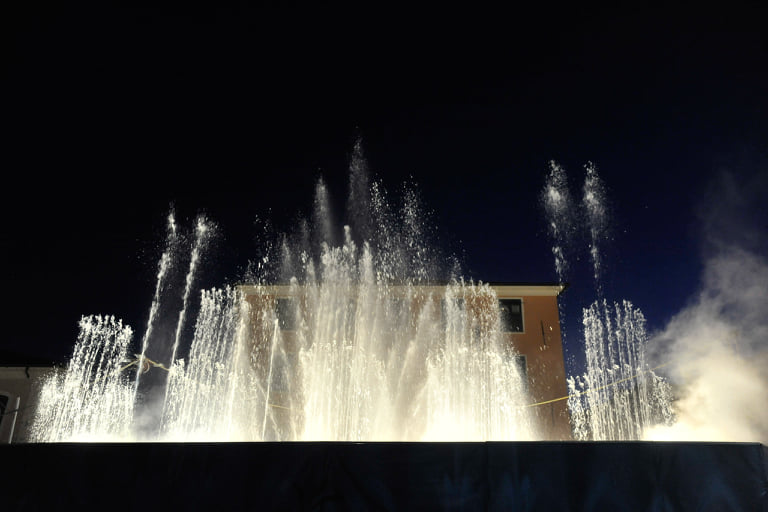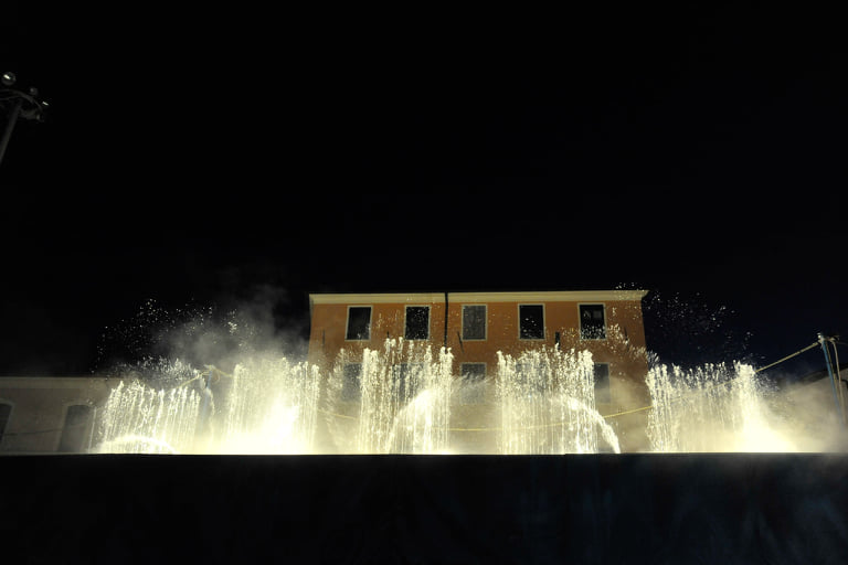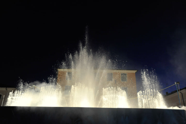 Tre gli spettacoli programmati per ogni serata: alle 21,30, 22,30 e 23,30, con soli cento posti a sedere gratuiti, ma su prenotazione, in rispetto alle norme anti contagio. I posti vengono sanificati nella pausa fra ogni spettacolo. Ma comunque tantissime persone hanno seguito le magie di acqua luci e fuoco in piedi lungo Calata Cuneo.