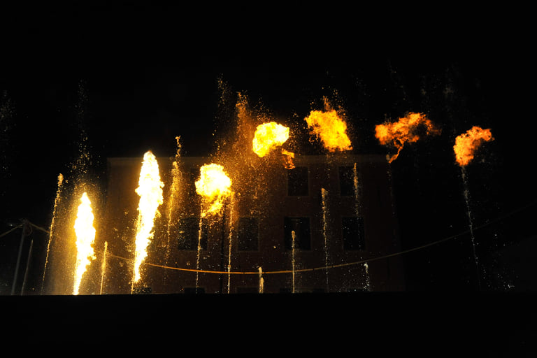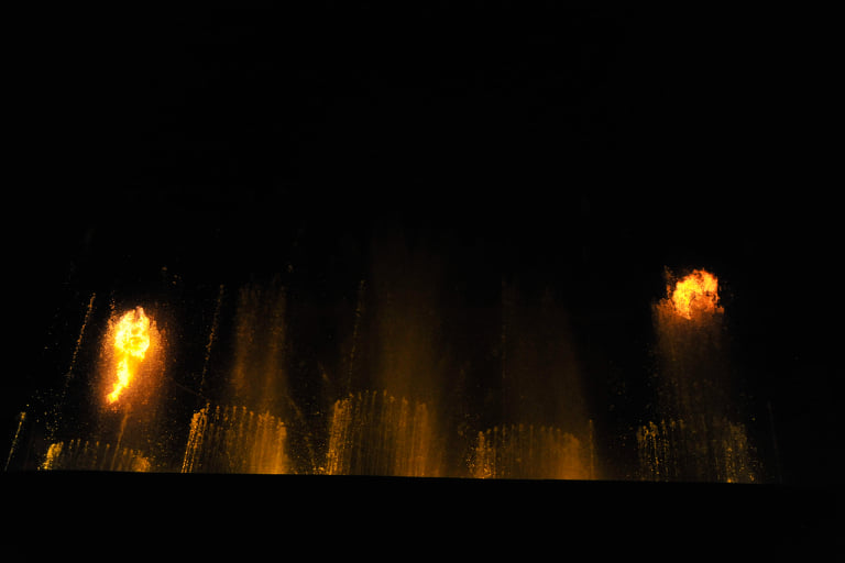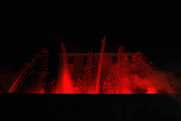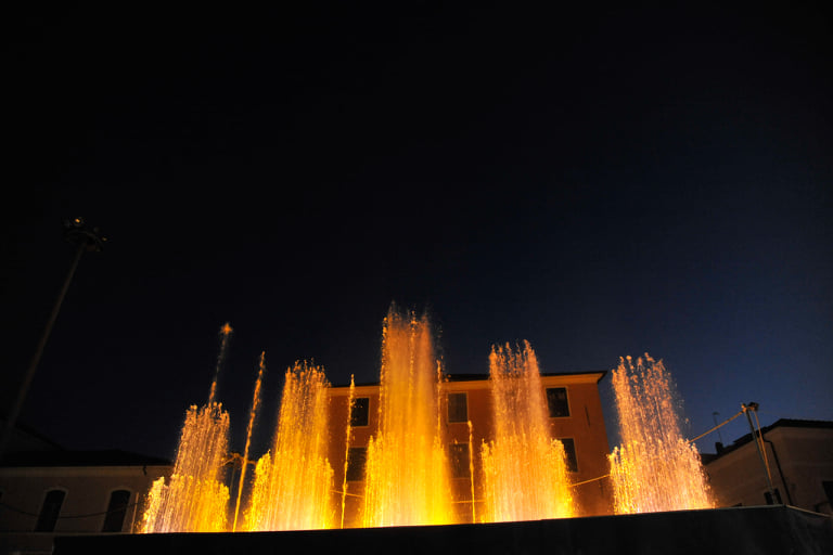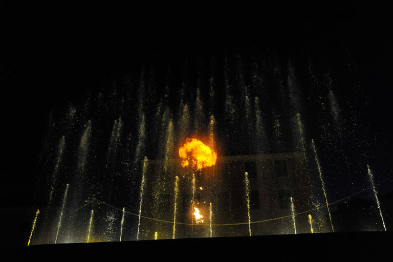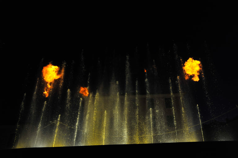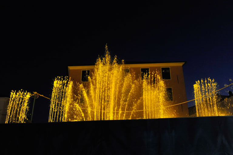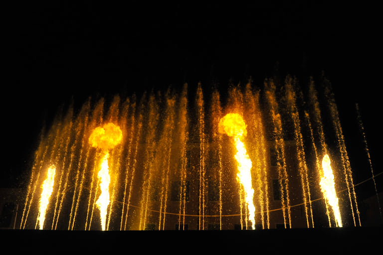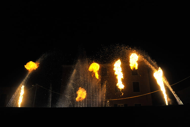 Tre gli spettacoli programmati per ogni serata: alle 21,30, 22,30 e 23,30, con soli cento posti a sedere gratuiti, ma su prenotazione, in rispetto alle norme anti contagio. I posti vengono sanificati nella pausa fra ogni spettacolo. Ma comunque tantissime persone hanno seguito le magie di acqua luci e fuoco in piedi lungo Calata Cuneo.